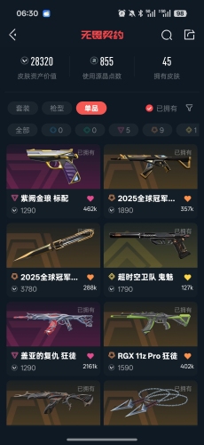 无畏契约13800皮肤价值,还有2639vp没有花,掠影套