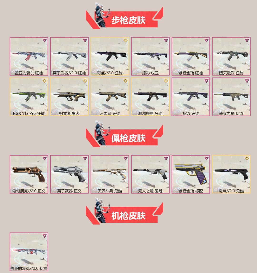 【英雄】:炼狱,暮蝶,捷风,不死鸟,贤者,猎枭,霓虹,斯凯【近战武器】:近战武器-