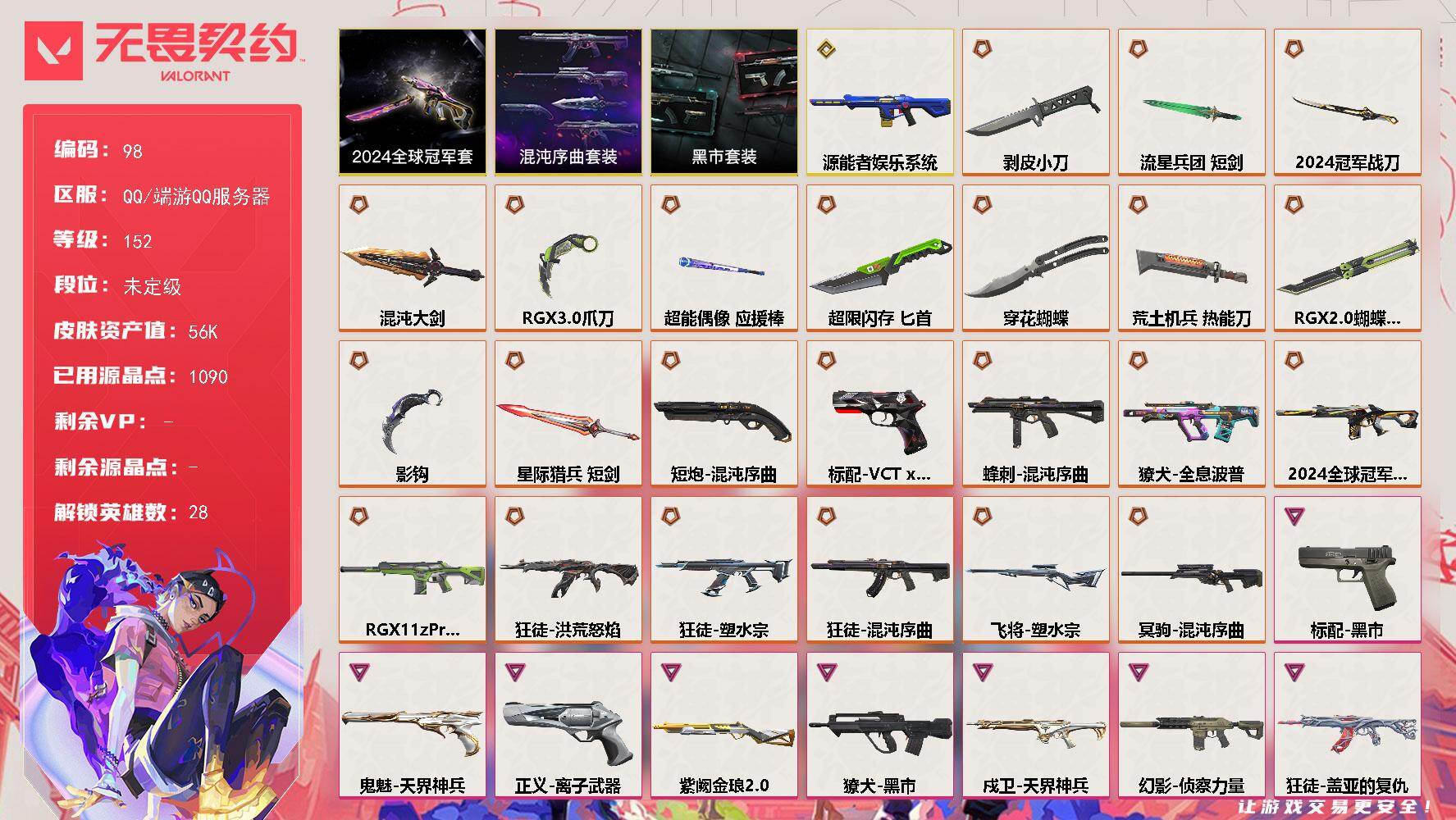 【套装】:2024全球冠军赛套装,混沌序曲套装,黑市套装【英雄】:幻棱,炼狱