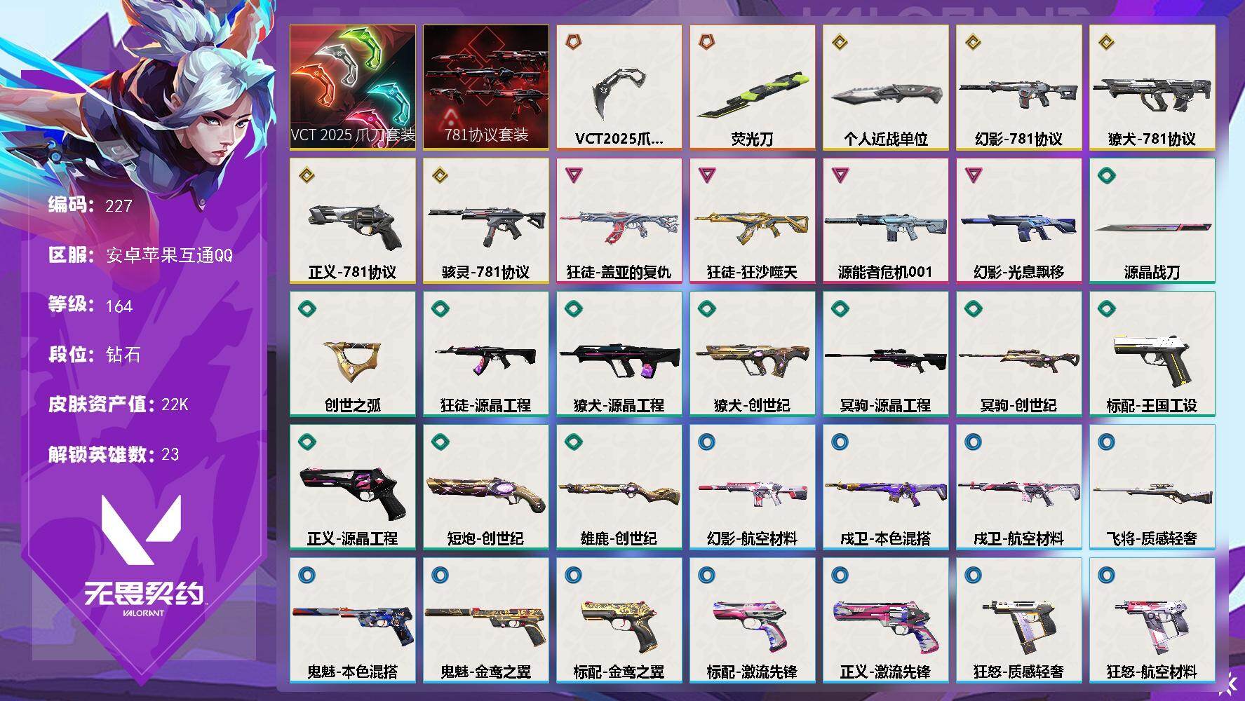 ad35,2025VCT爪刀礼包781协议礼包,等级164,5黄皮2橙皮4紫皮