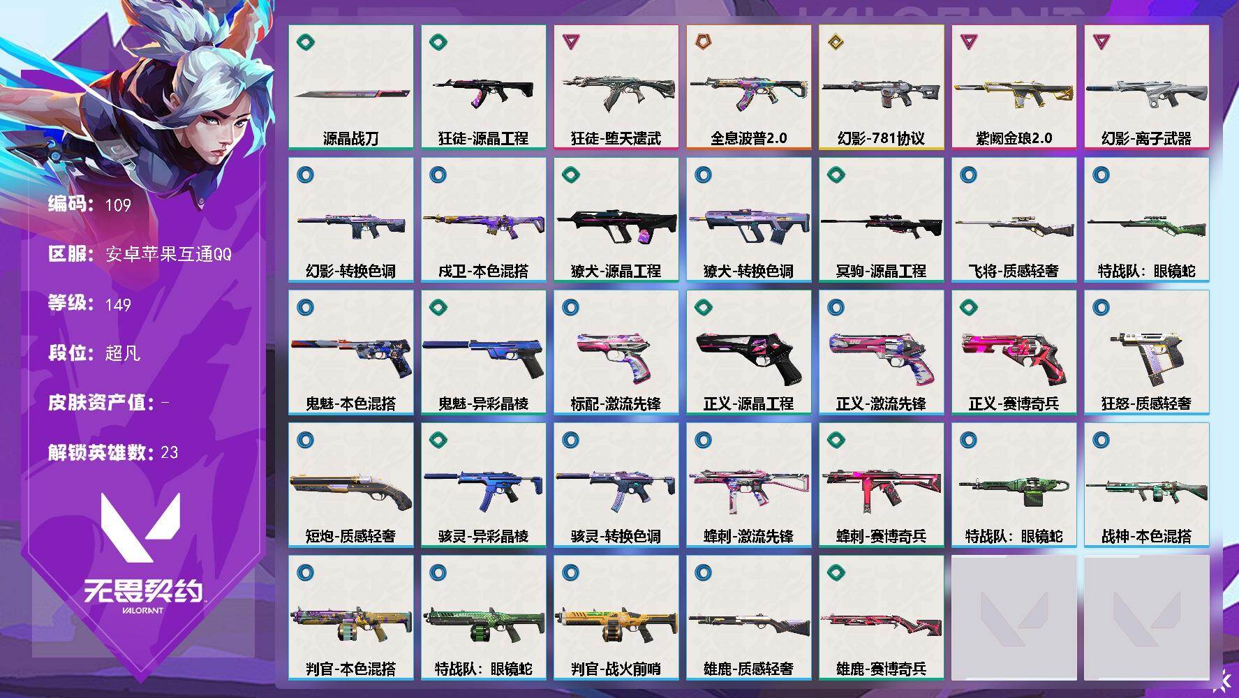 aa99,等级149,1黄皮1橙皮3紫皮,幻影,狂徒,卡面45喷漆50挂饰28
