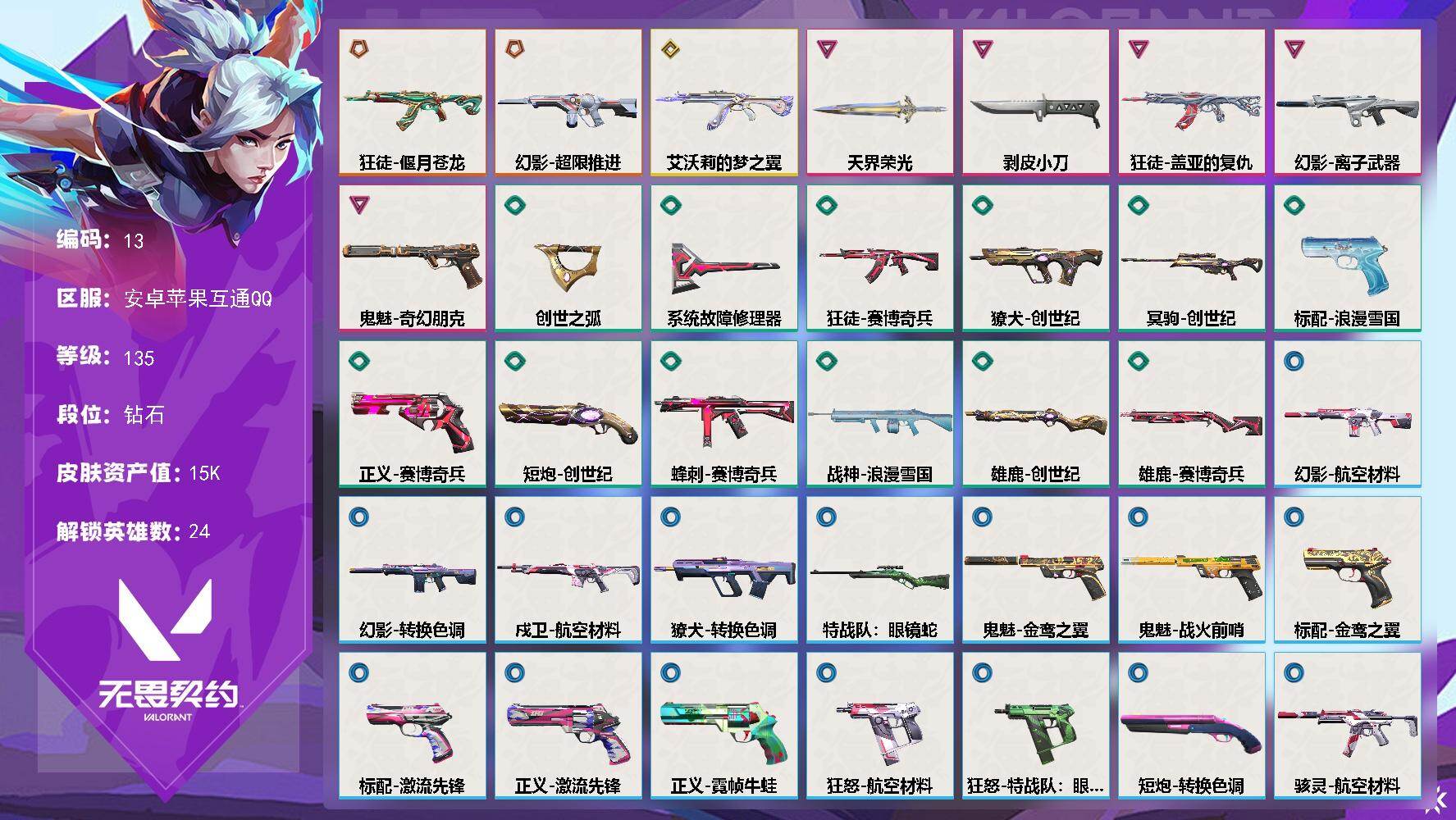 [17138991]实名: 可修改 实名人: 是本人 皮肤资产价值: 1347