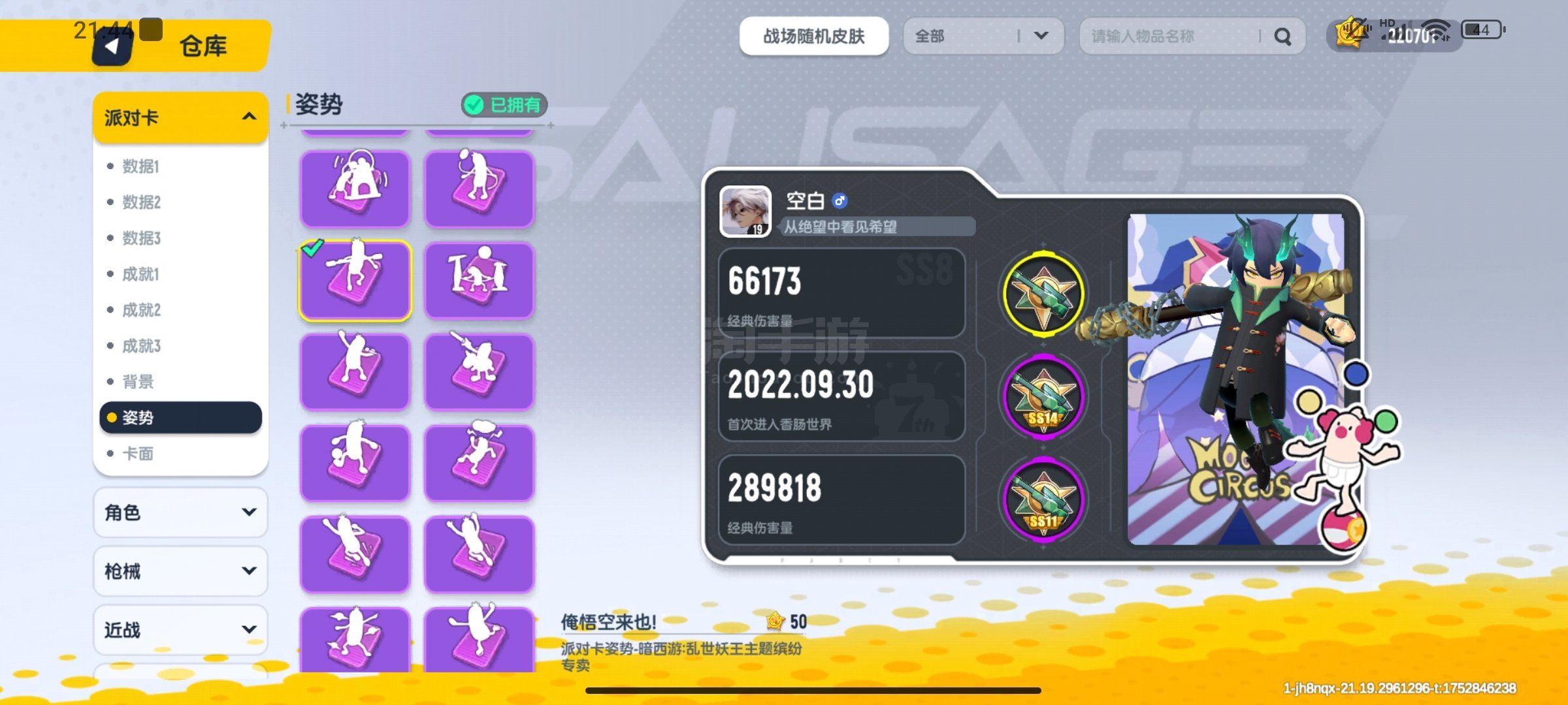 香肠派对S1赛季派对卡22万美味值账号有S1赛季派对卡等绝版梦幻皮肤