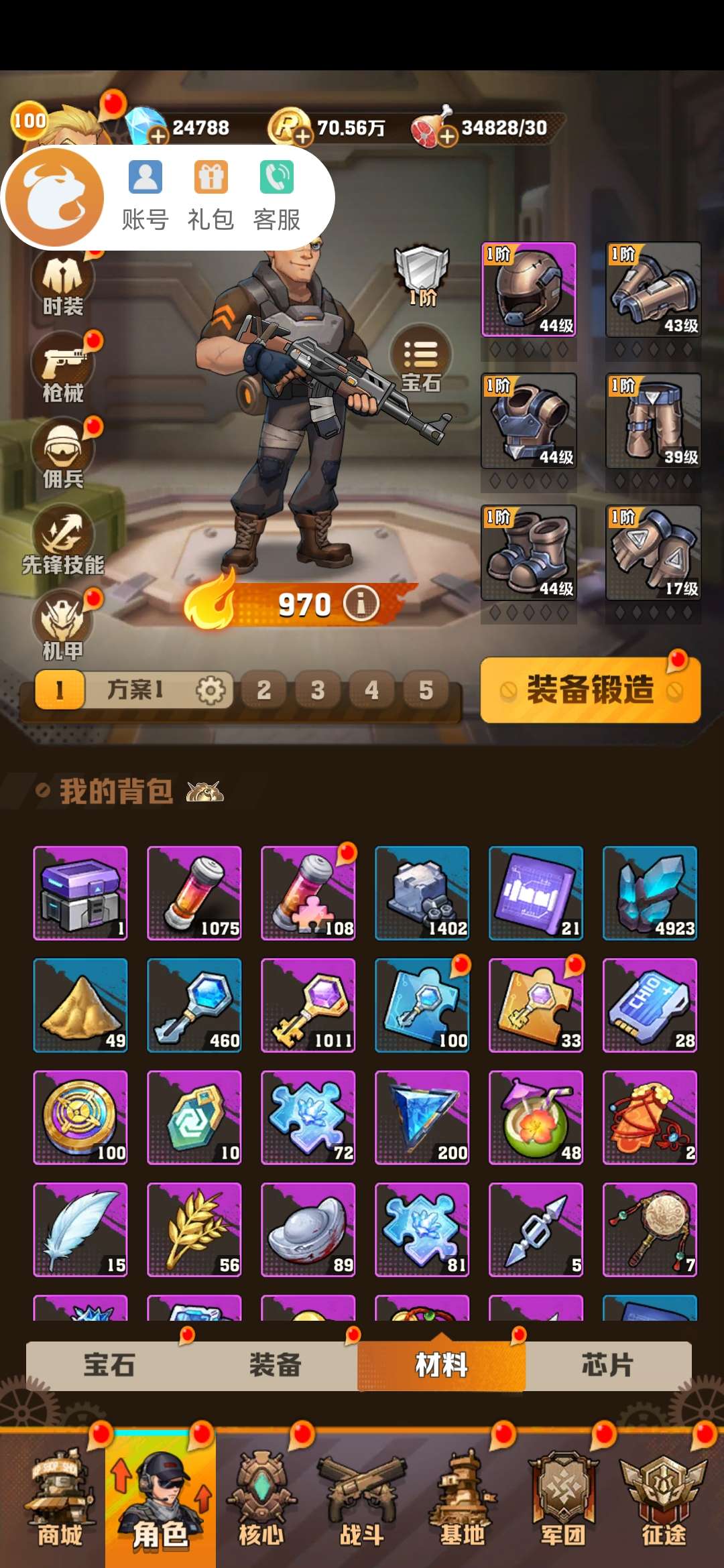 钻石开局号,2.4万钻石,1075洗衣粉,1011紫色钥匙,皮肤核心、体力看截图,顶级资源号