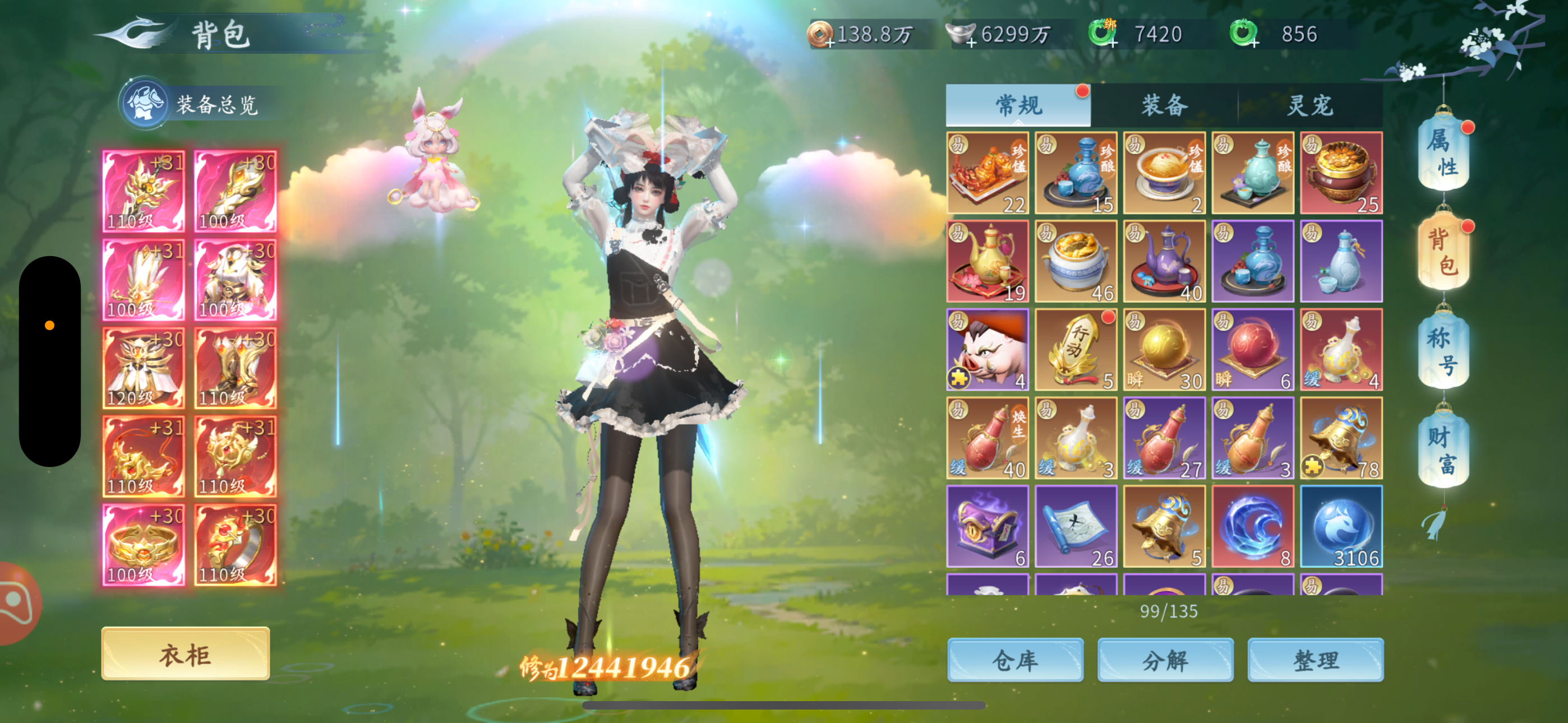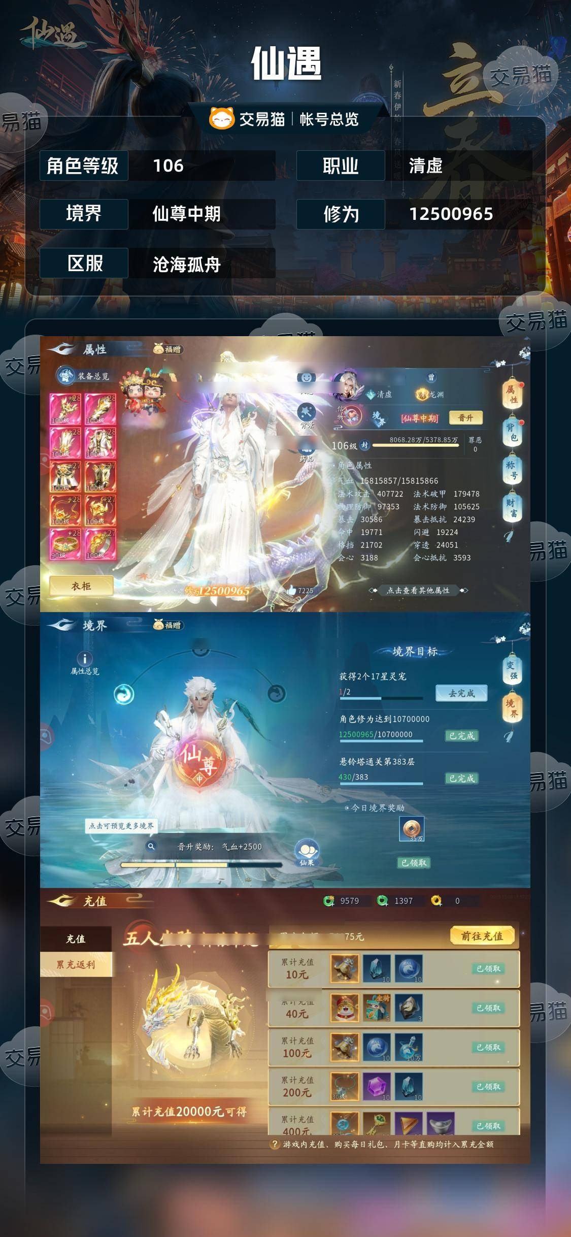 累充9W,117级1300万修为,基本全部拉满,该有都有,性价比超高!