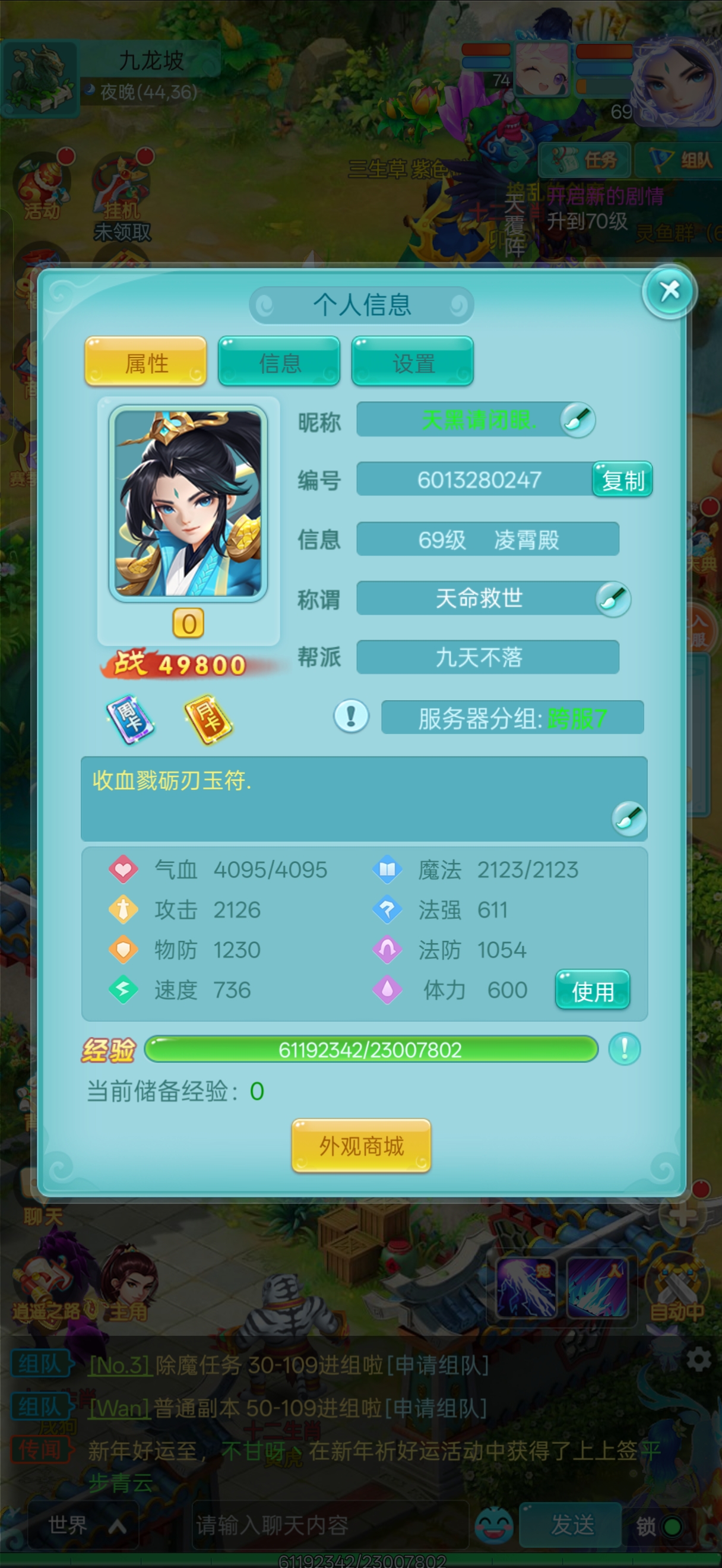 69水晶三套心法都满被动灵器满,5300多万银币,52万多金币,8红龙女