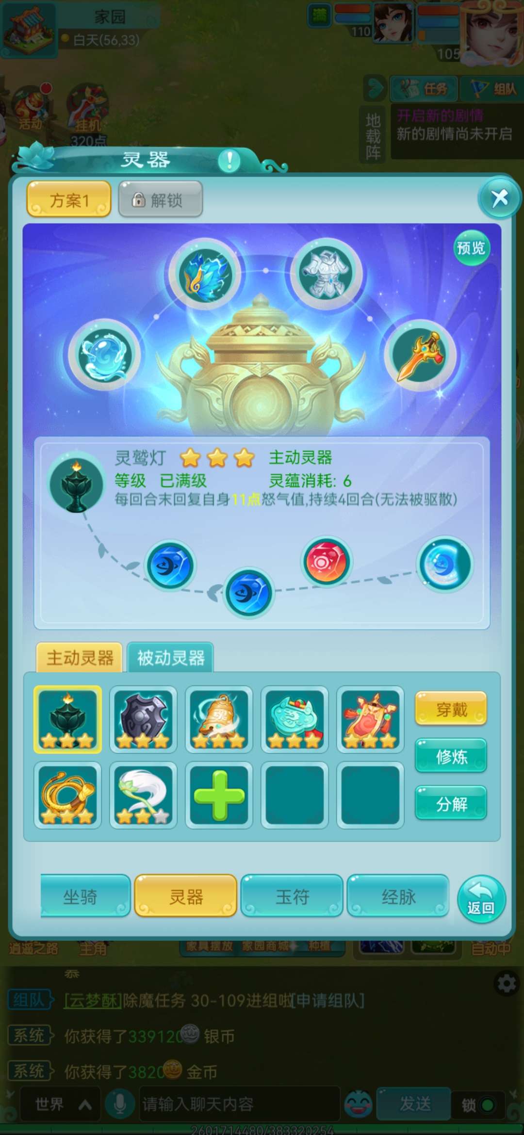 首席天音,心法三套全满,被动灵器全满仙级剑和御兽环都是不戴发挥50%效果