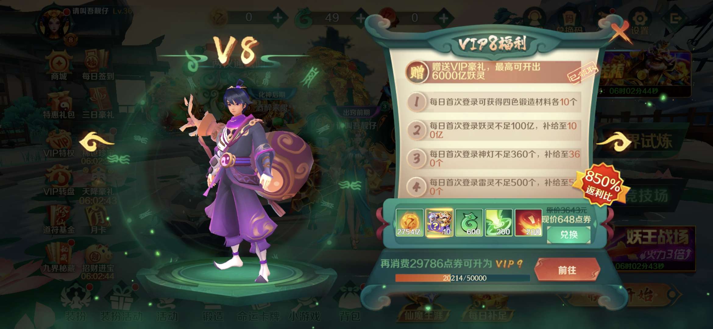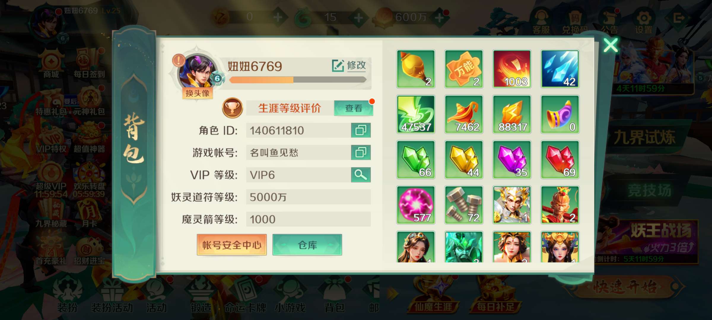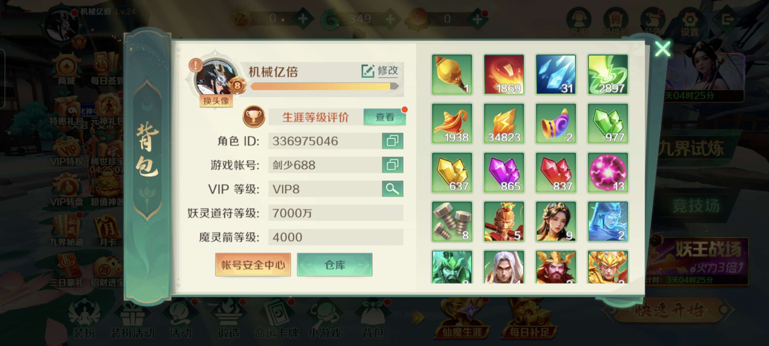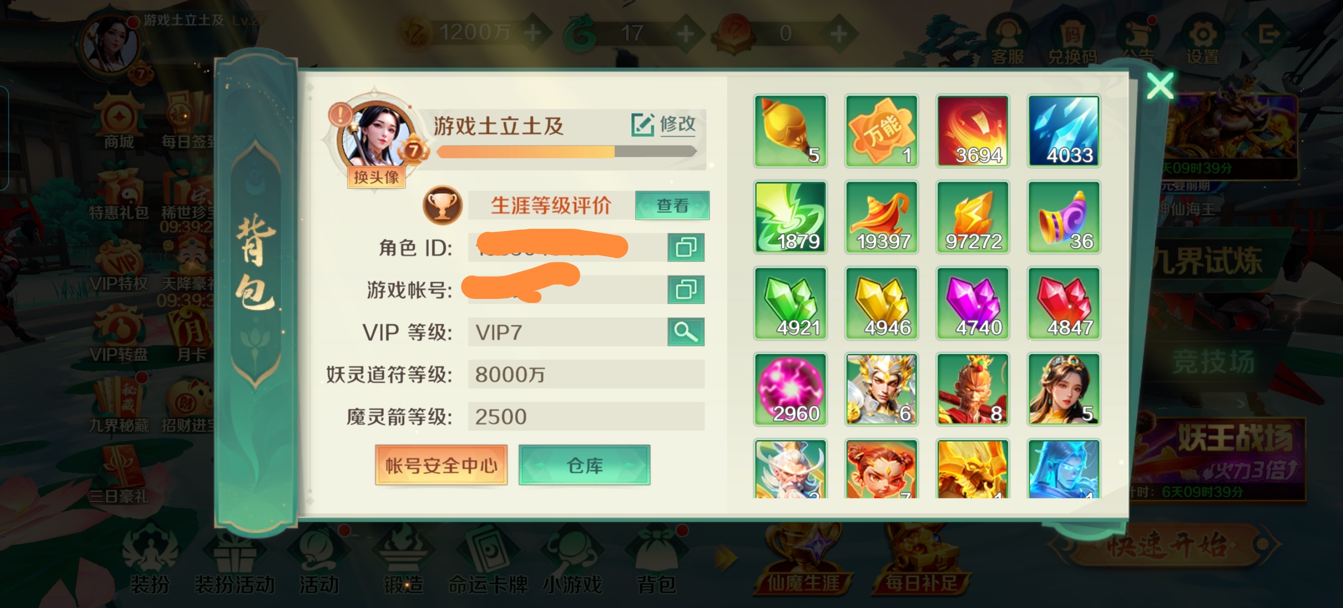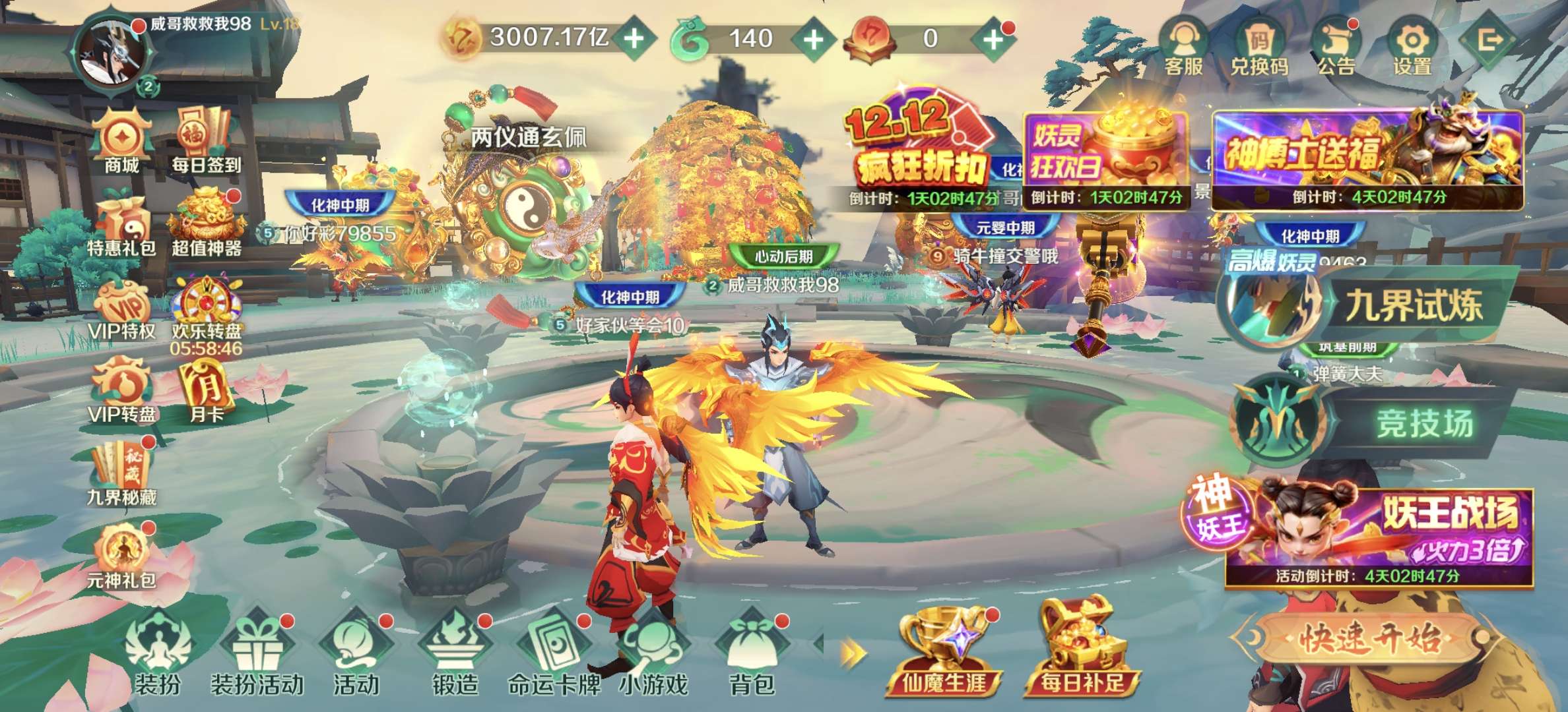 新仙魔九界 高充值 v7 账号,带妖灵一万亿,带一个裂天牛魔原神,游戏里可以一起打怪,官方 648