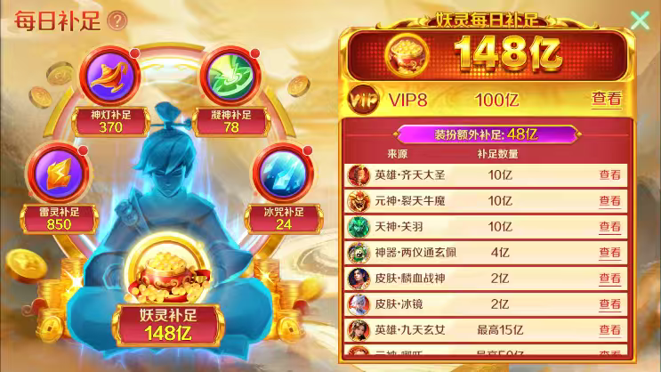 甩卖顶级v9充值15w-每天救济670亿妖灵-双万炮全都有 不议价 最低