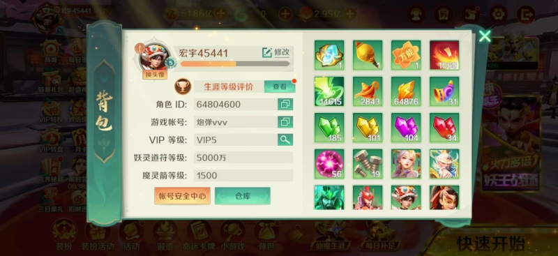 v5高炮,5000万炮,带42000亿金币,账号不错,价格便宜