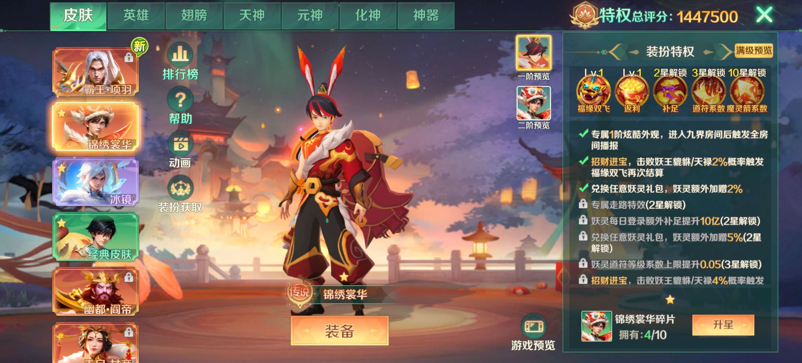 高评分7777777 3元神元神带项羽皮肤