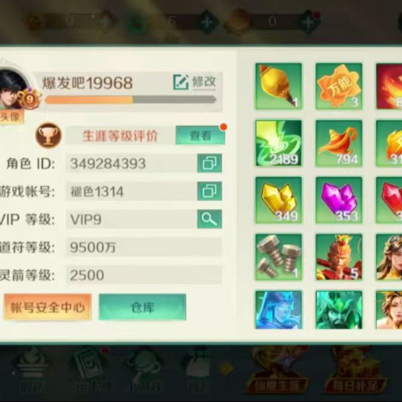 高充v9,极品400w高评,带猴子带神器,炮台加成9900