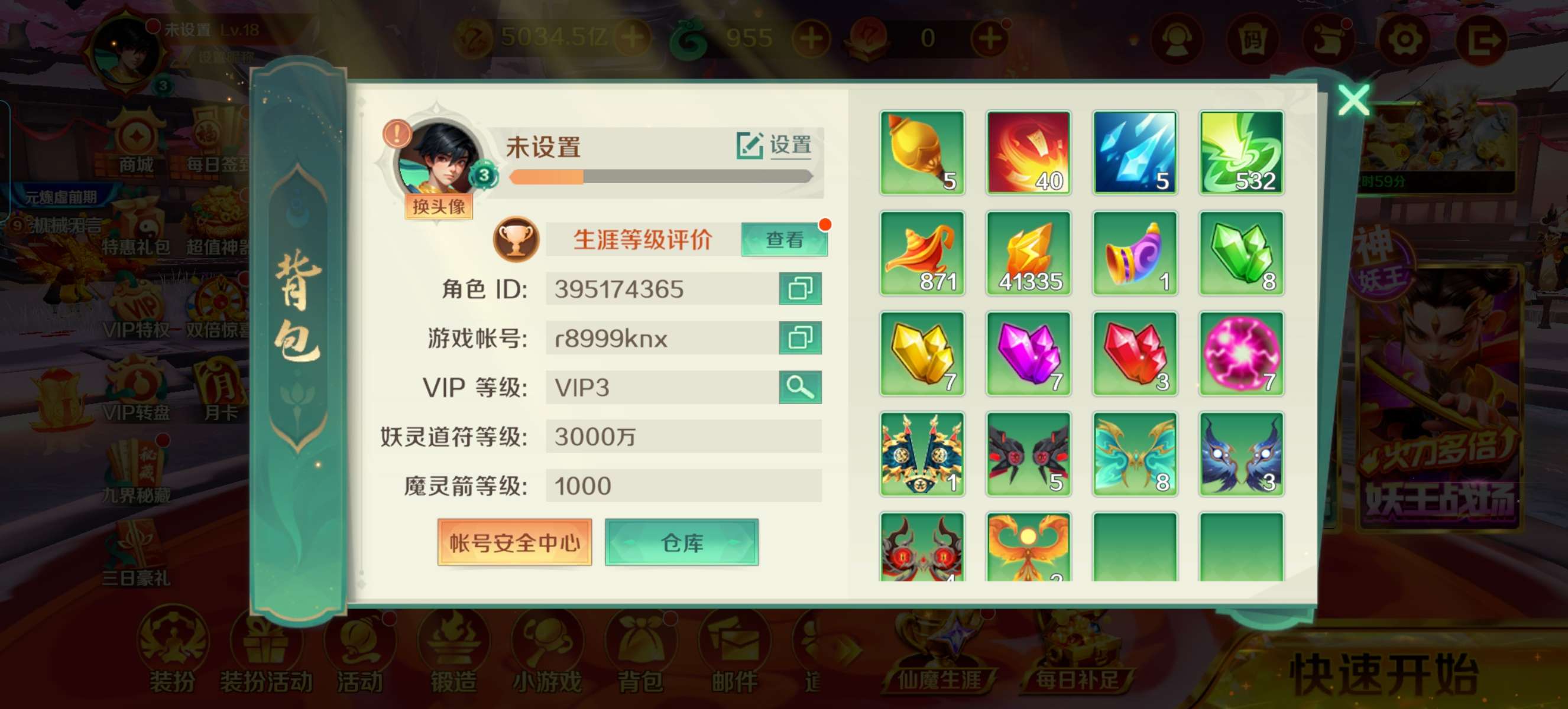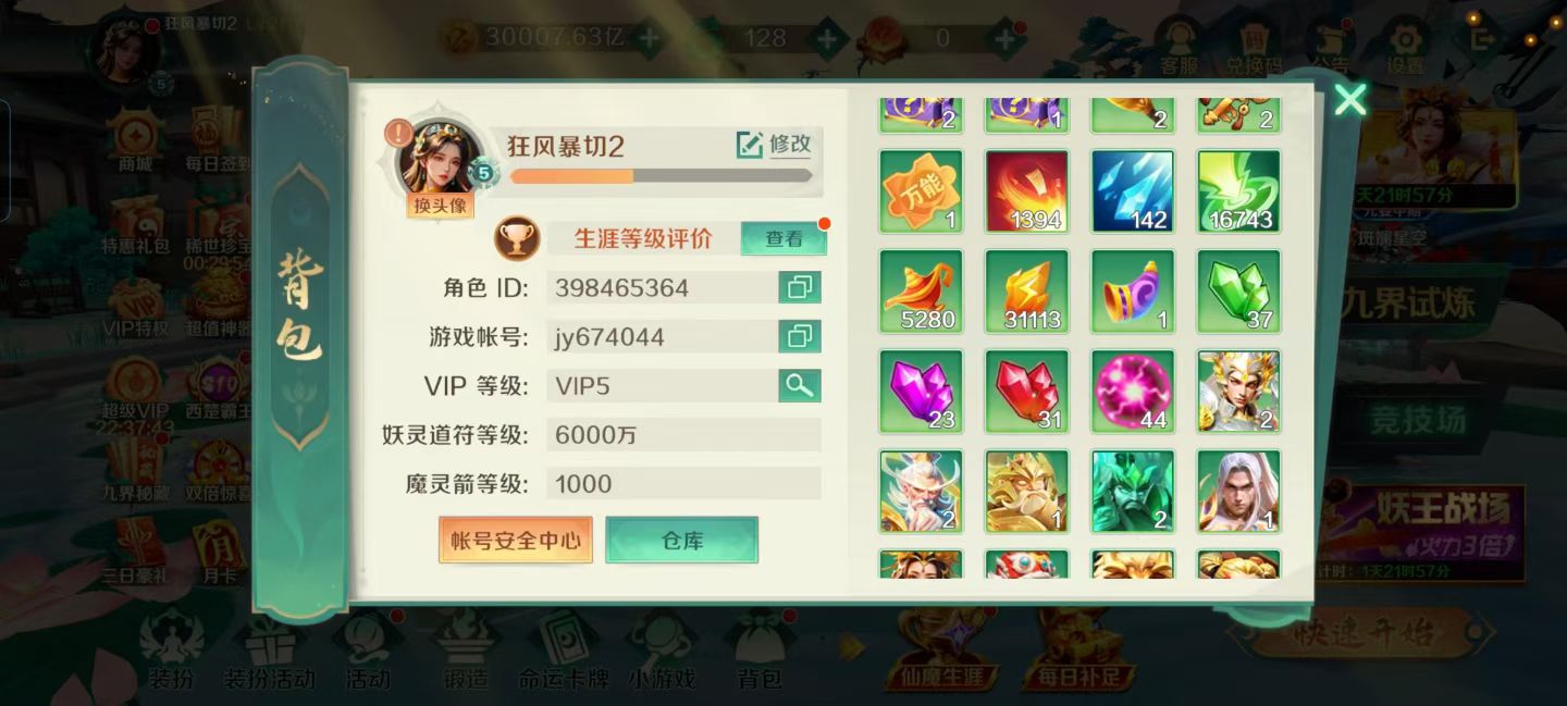 官方vip5账号,带3亿金币,极品6000炮