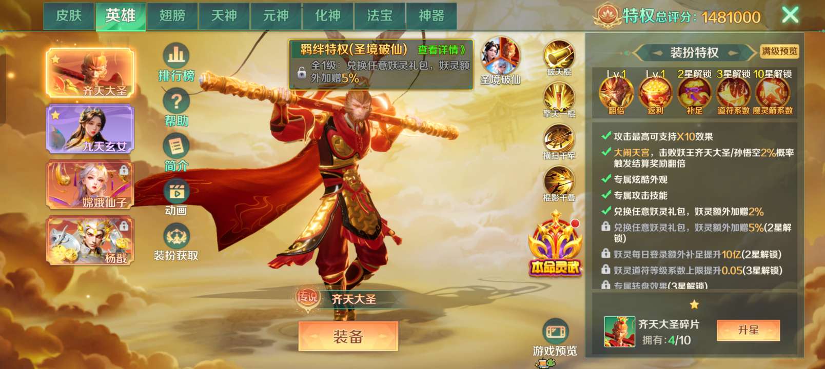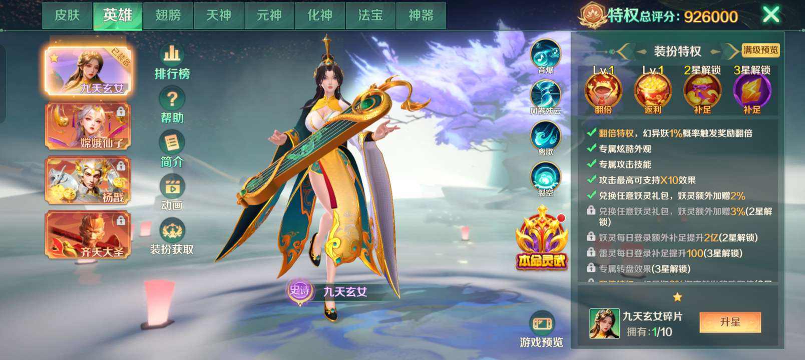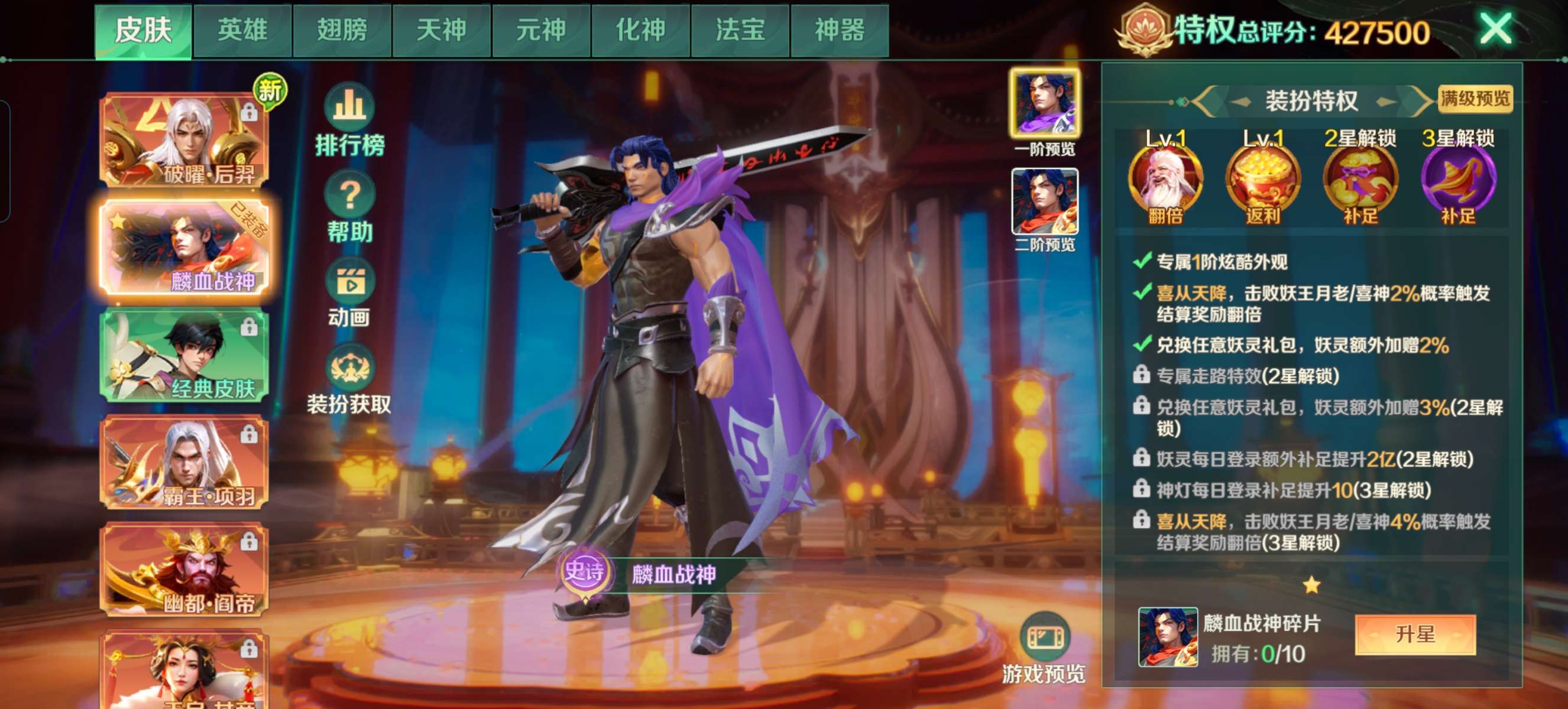 号尊(只纯玩,神灯免费送)2亿孙悟空关羽极品v8,没破产可以一直玩破产回