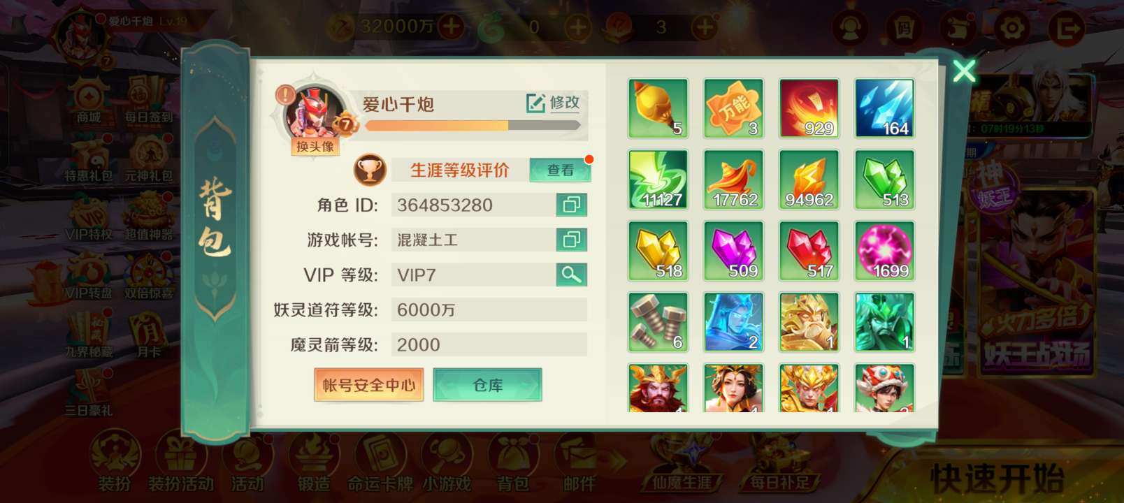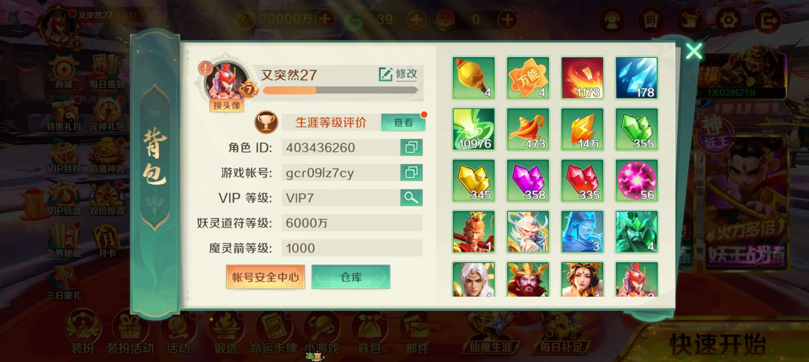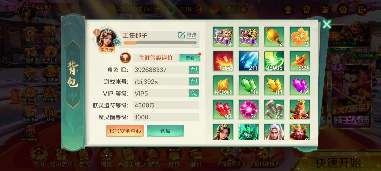 号尊(极品可换绑账号 神灯免费续)1.34亿天神5