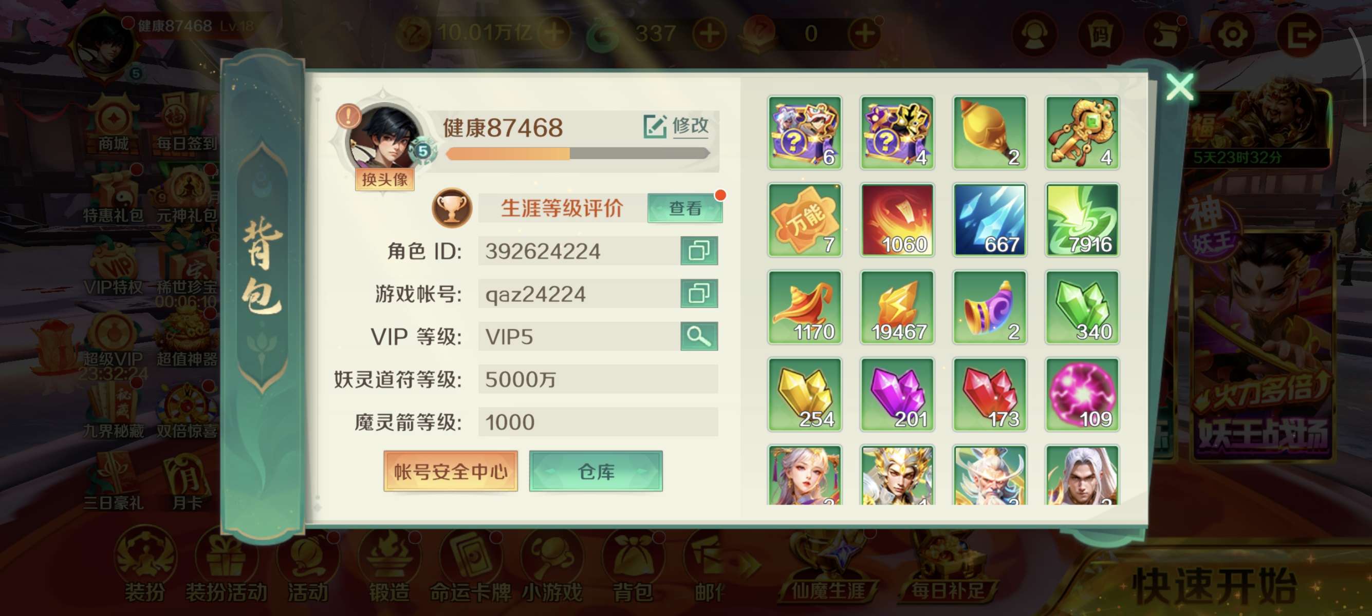 v5,10万亿妖灵,5000炮台