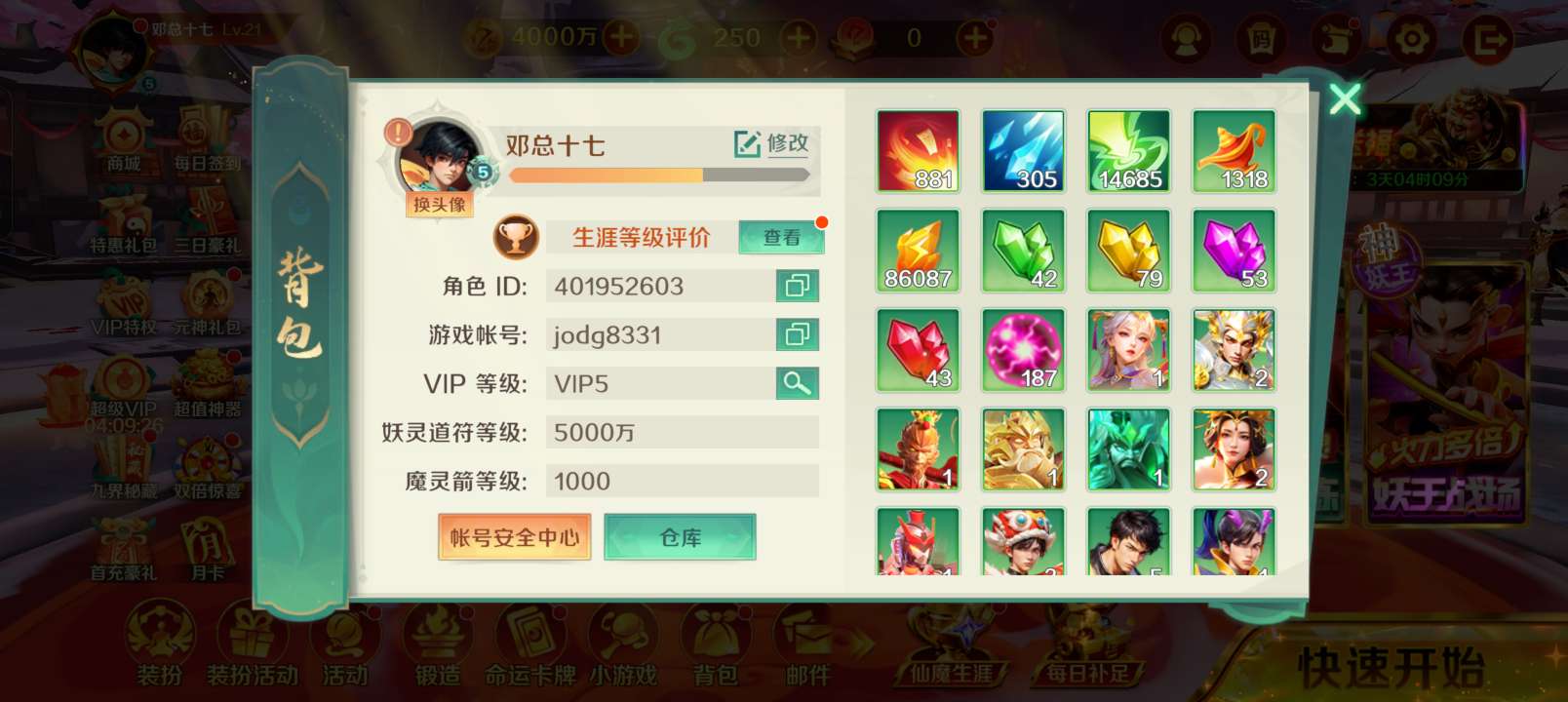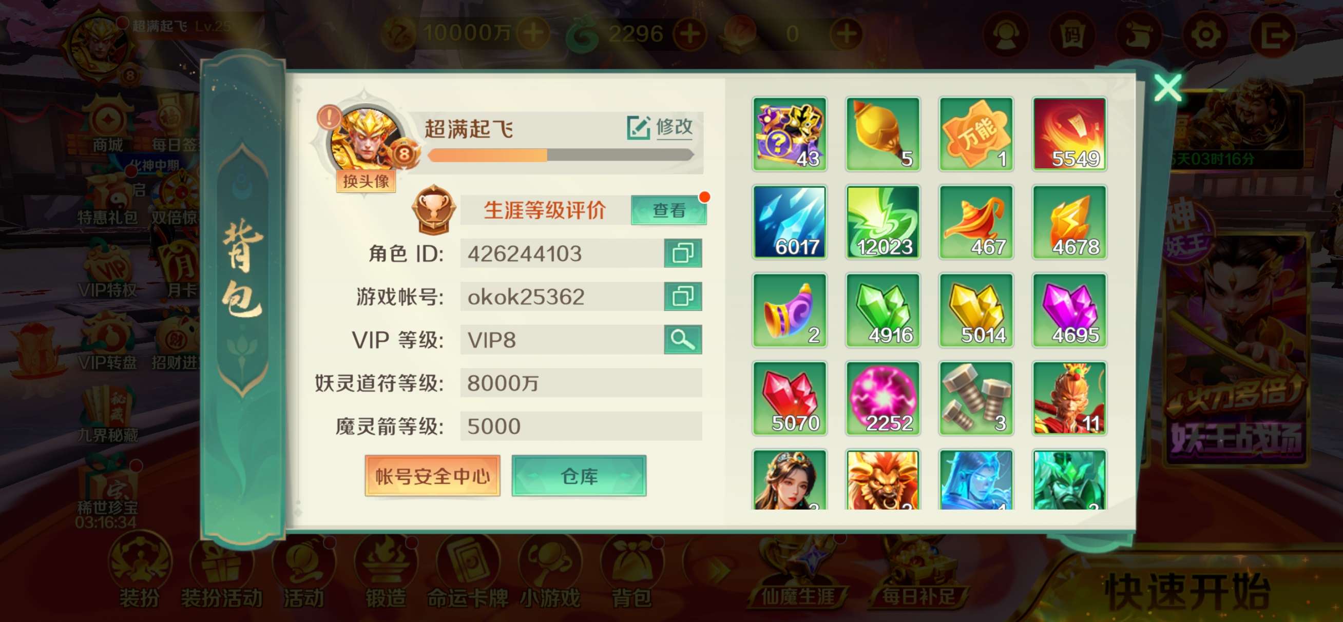 号尊(特价纯玩 只出分 6817),1.6亿天神V5,上分双倍免费赠送同品质账号一台