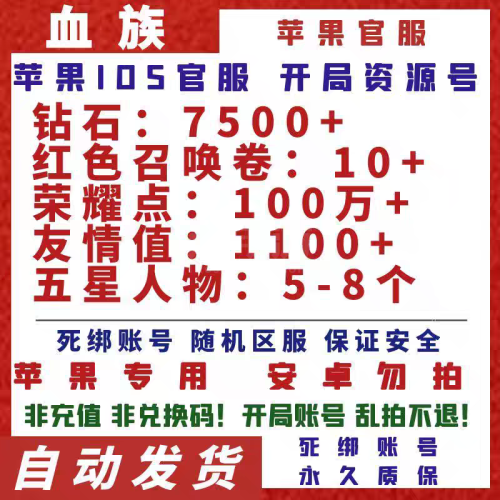 血族【苹果官方】血族bloodline自抽号初始号开局号资源号高抽手游账号苹果ios0