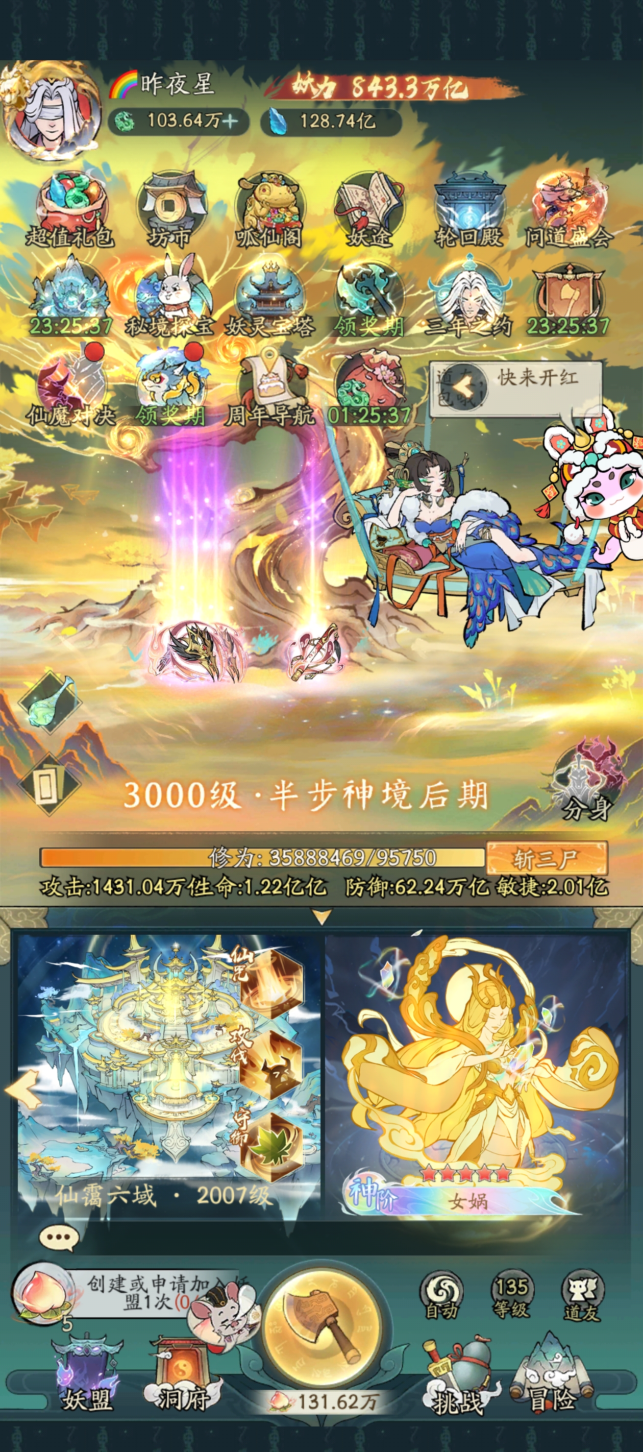寻道大千苹果安卓55w桃子45w仙玉,0.1折充值优惠