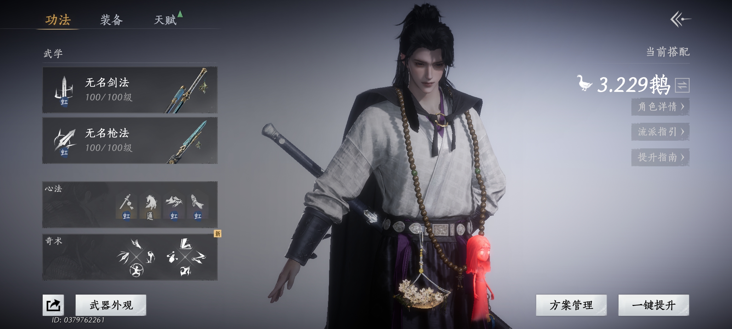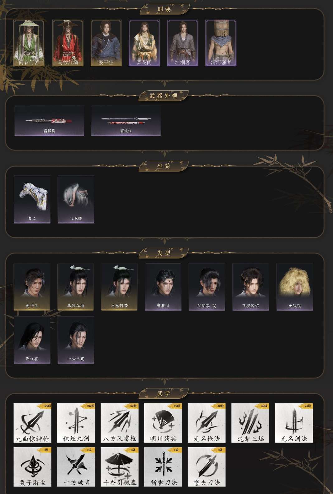 角色等级:100风华值:10994武林造诣:3.521鹅全部套装:葬花吟/晏平生/蓬山万重/江