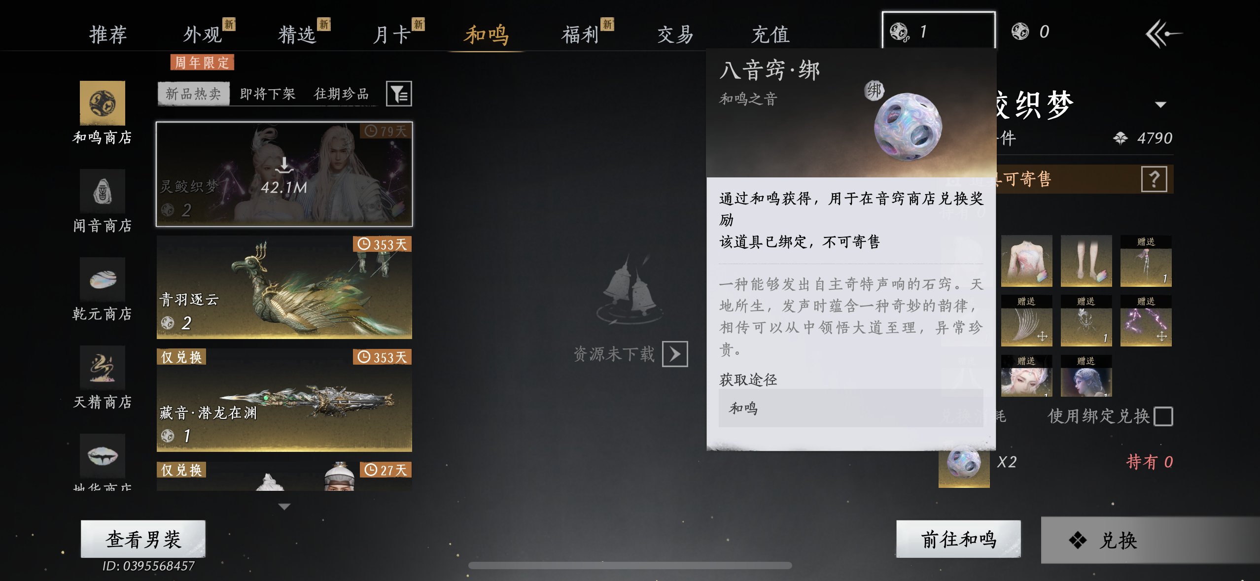 【等级:5 绝境 战力:0.369 已用八音窍(不含染色):0 葬花吟 套装:蜀戏春】初始女角色账号,自带两颗八音窍(未用),服装258蜀戏春+和鸣套装葬花吟