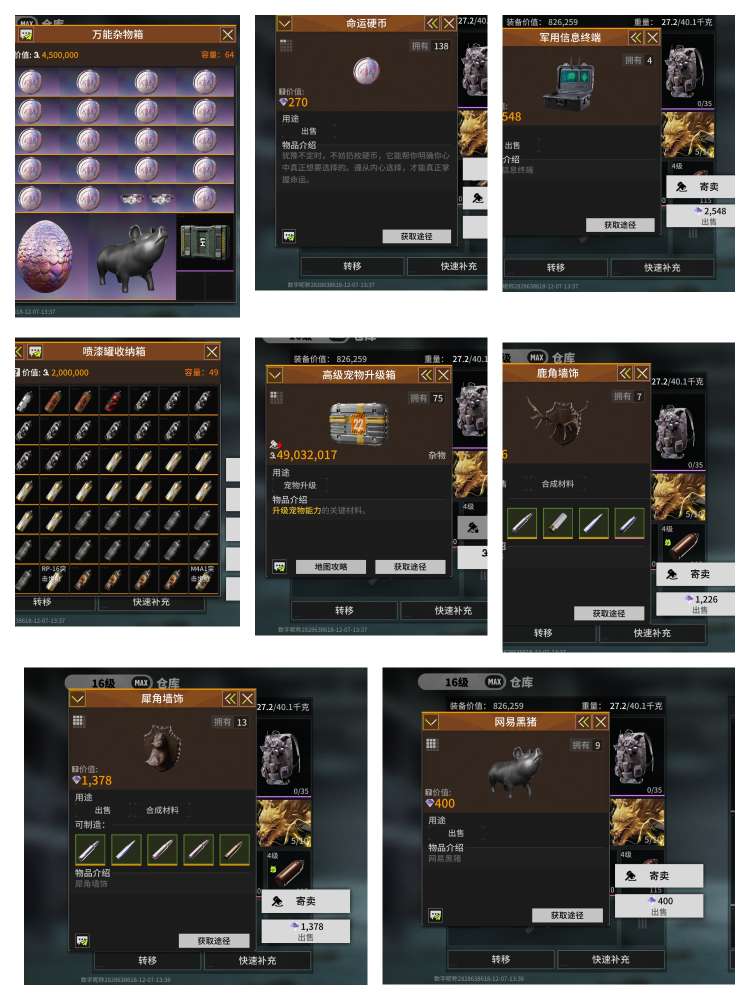 雷鸣大狙13罐满喷,宠物满级,除了熊猫没有做其他都满了背包还有二罐魔龙
