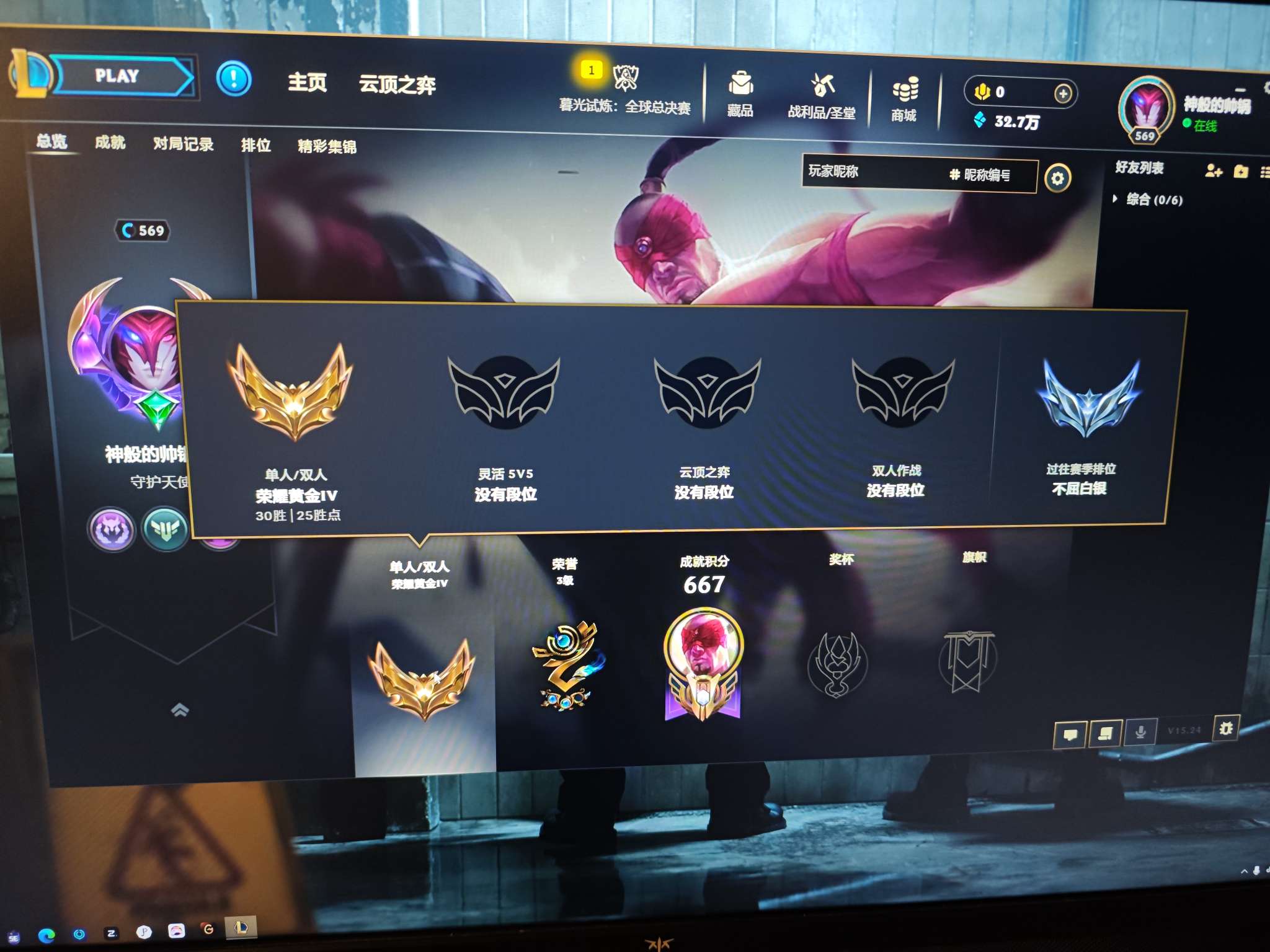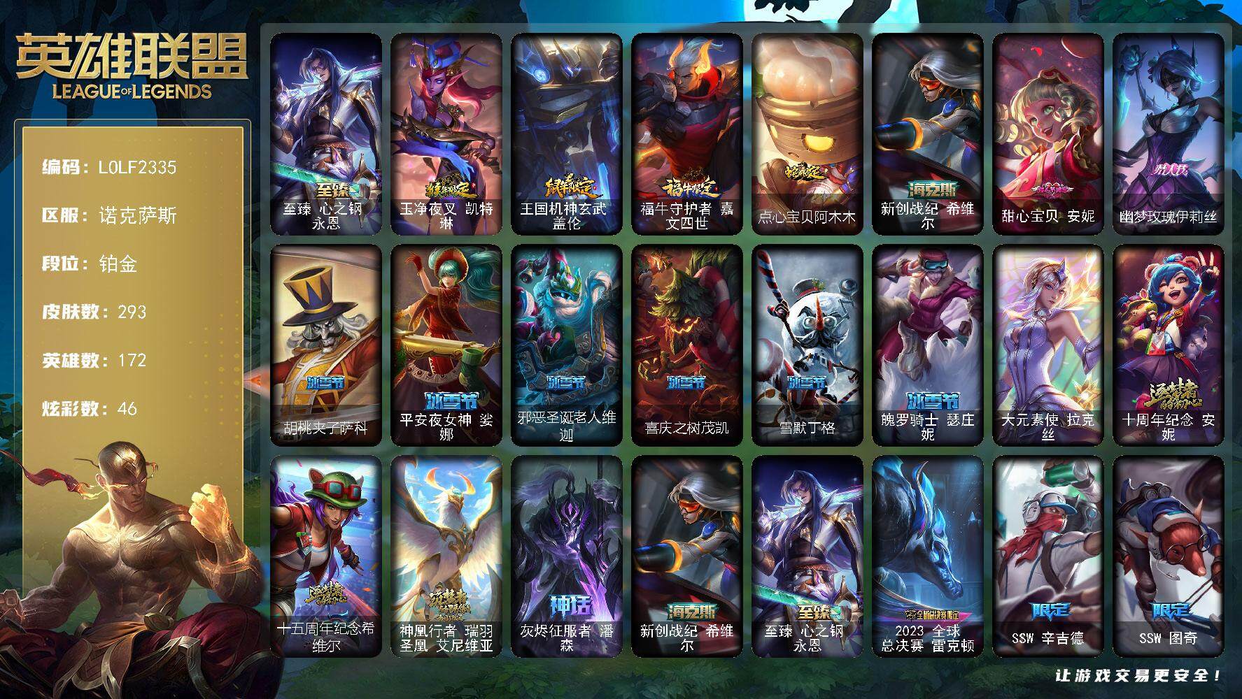 172英雄/77皮肤/3神话/12限定/3臻彩/26炫彩/5传说/12史诗/钻石账号等级:488/