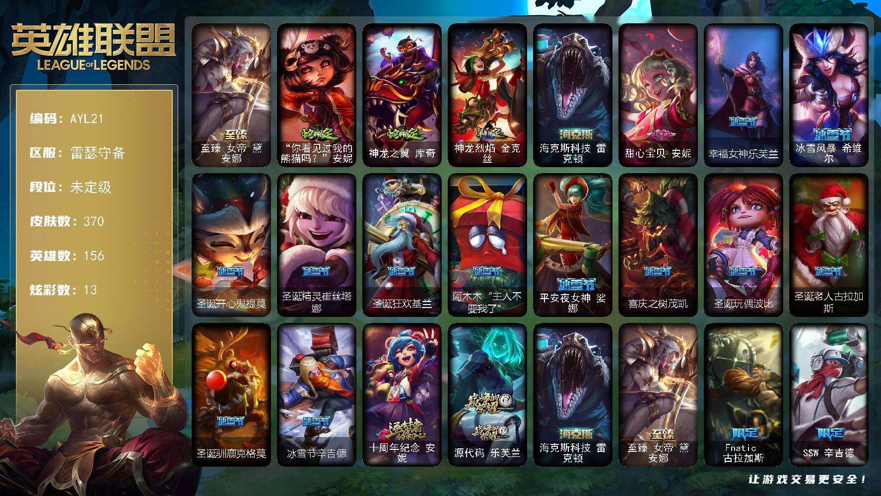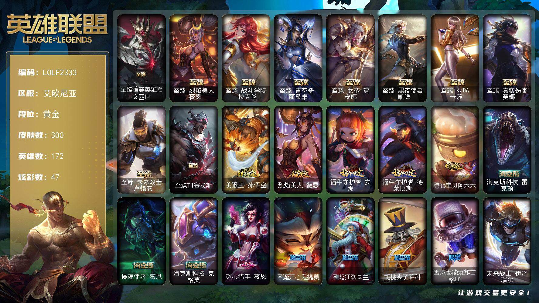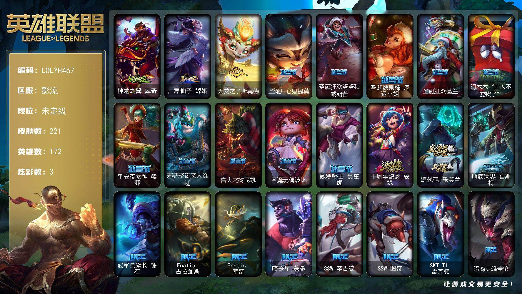 172英雄/250皮肤/4神话/18限定/5臻彩/39炫彩