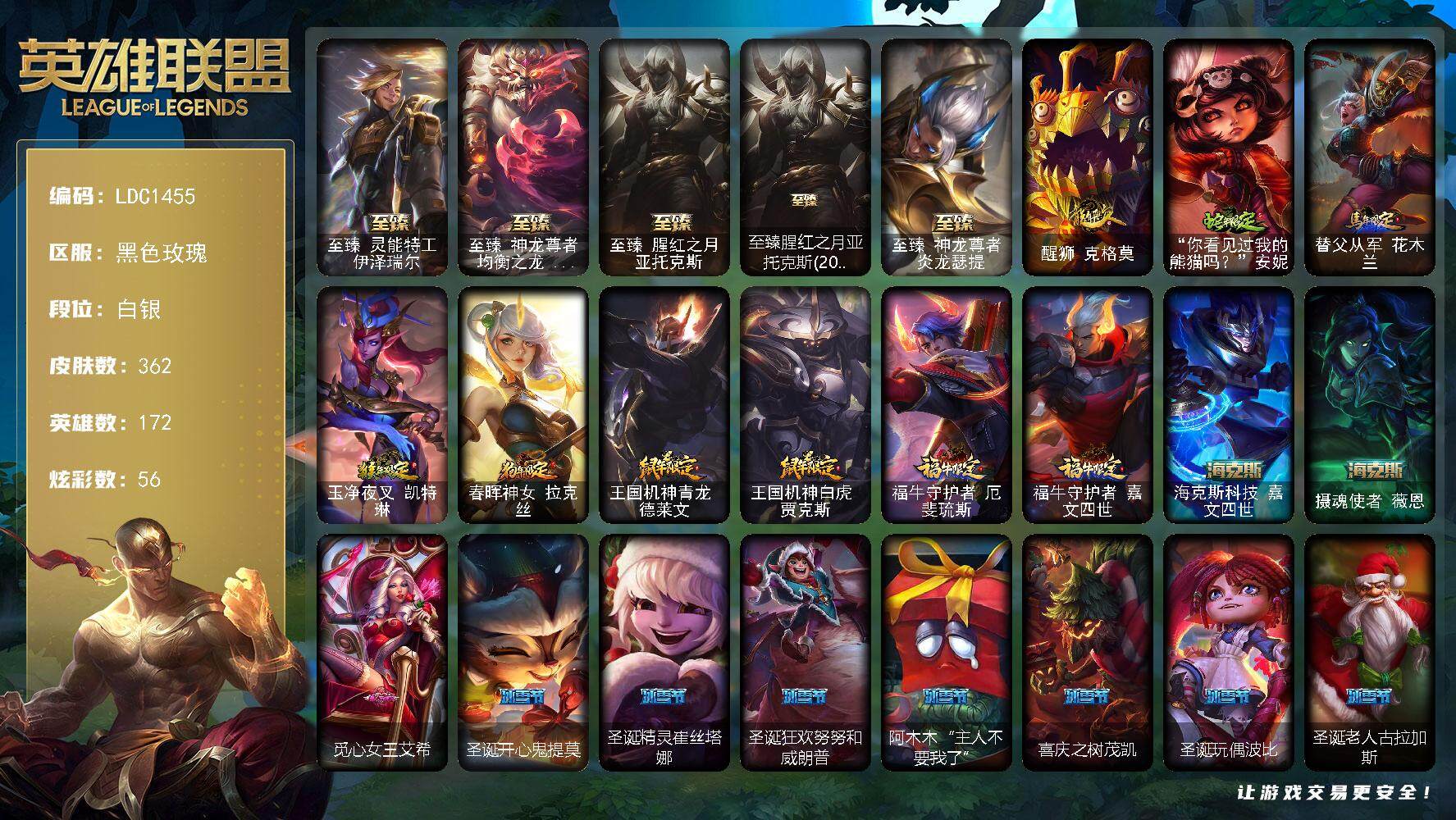 172英雄/79皮肤/13限定/1臻彩/21炫彩/9传说/24史诗/流光翡翠账号等级:215/
