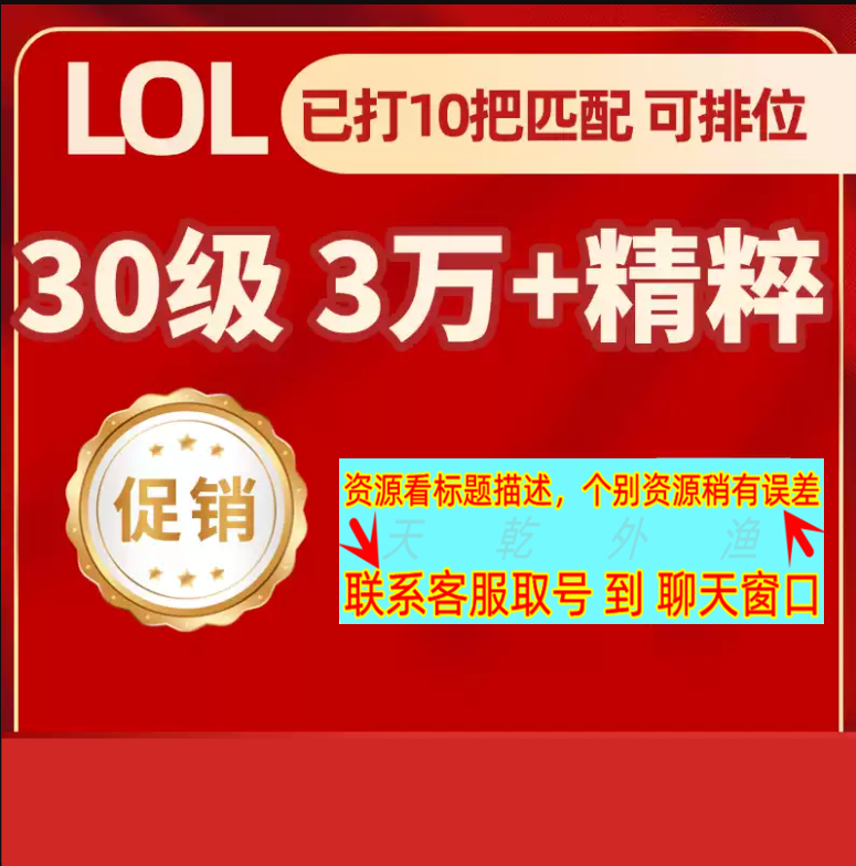 30级3-4万精粹特价号可直接排位【不可换绑不可改密只能登游戏】