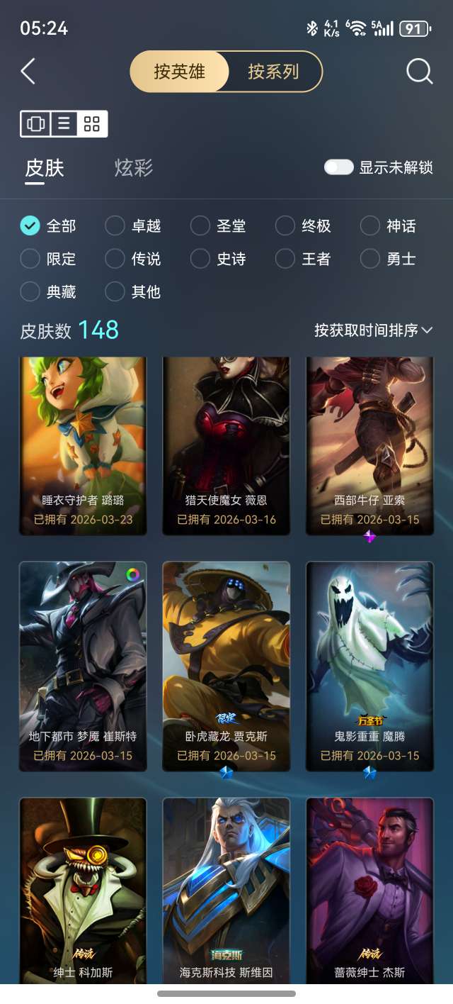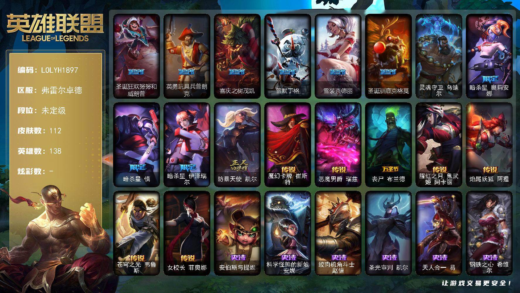 138英雄/112皮肤/1终极/10限定/7传说/31史诗/未