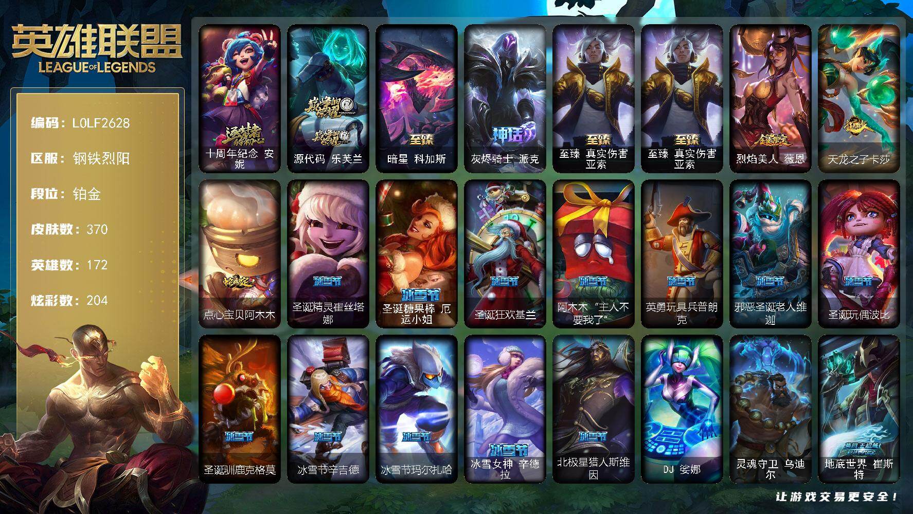 172英雄/370皮肤/2终极/5神话/57限定/11臻彩/204炫彩/46传说/81史诗