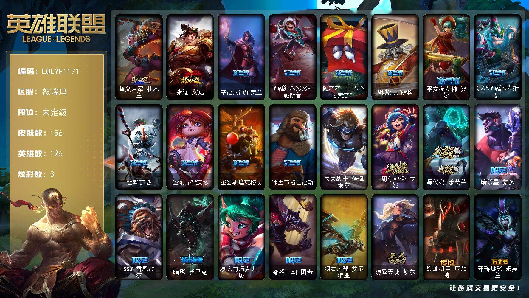 126英雄/156皮肤/1终极/2神话/19限定/1臻彩/3炫彩/15传说/45史诗/未定级