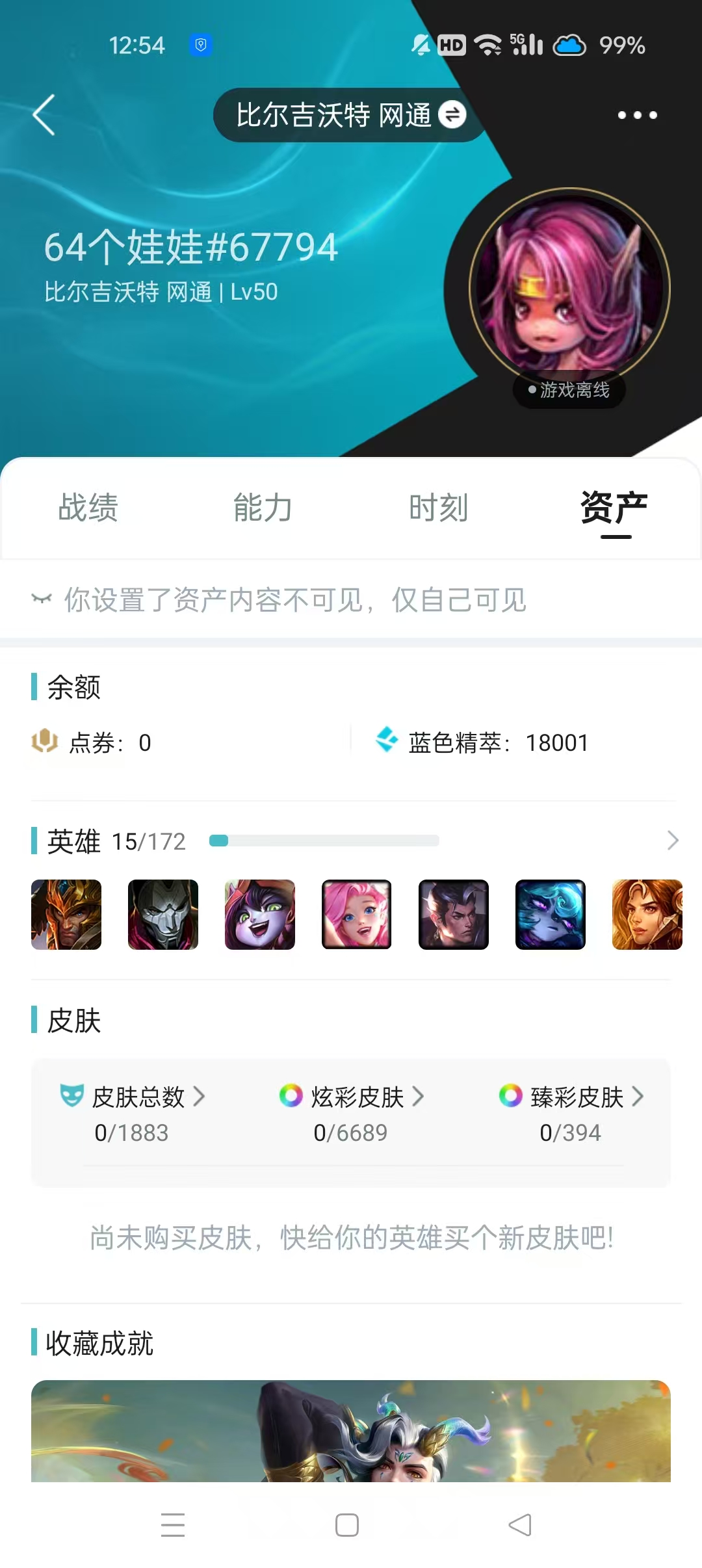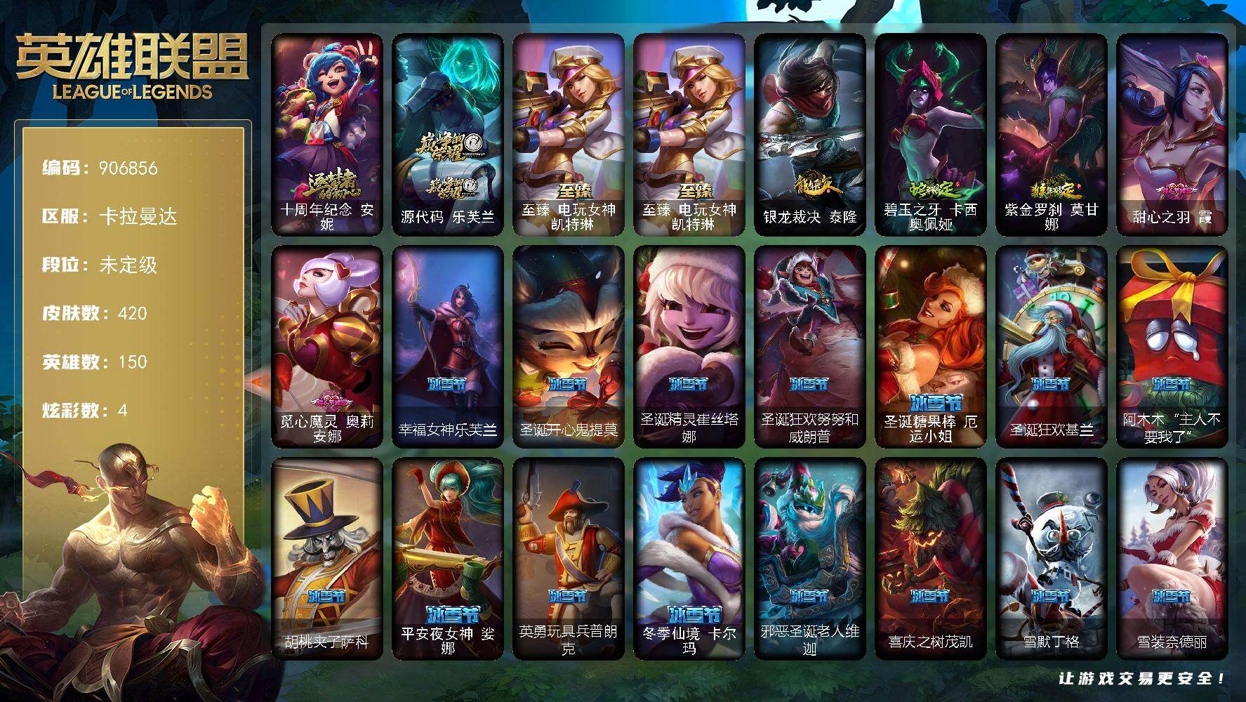 未定级段位-150英雄-420皮肤-4炫彩-0终极-3神话-75限定-26传说-10
