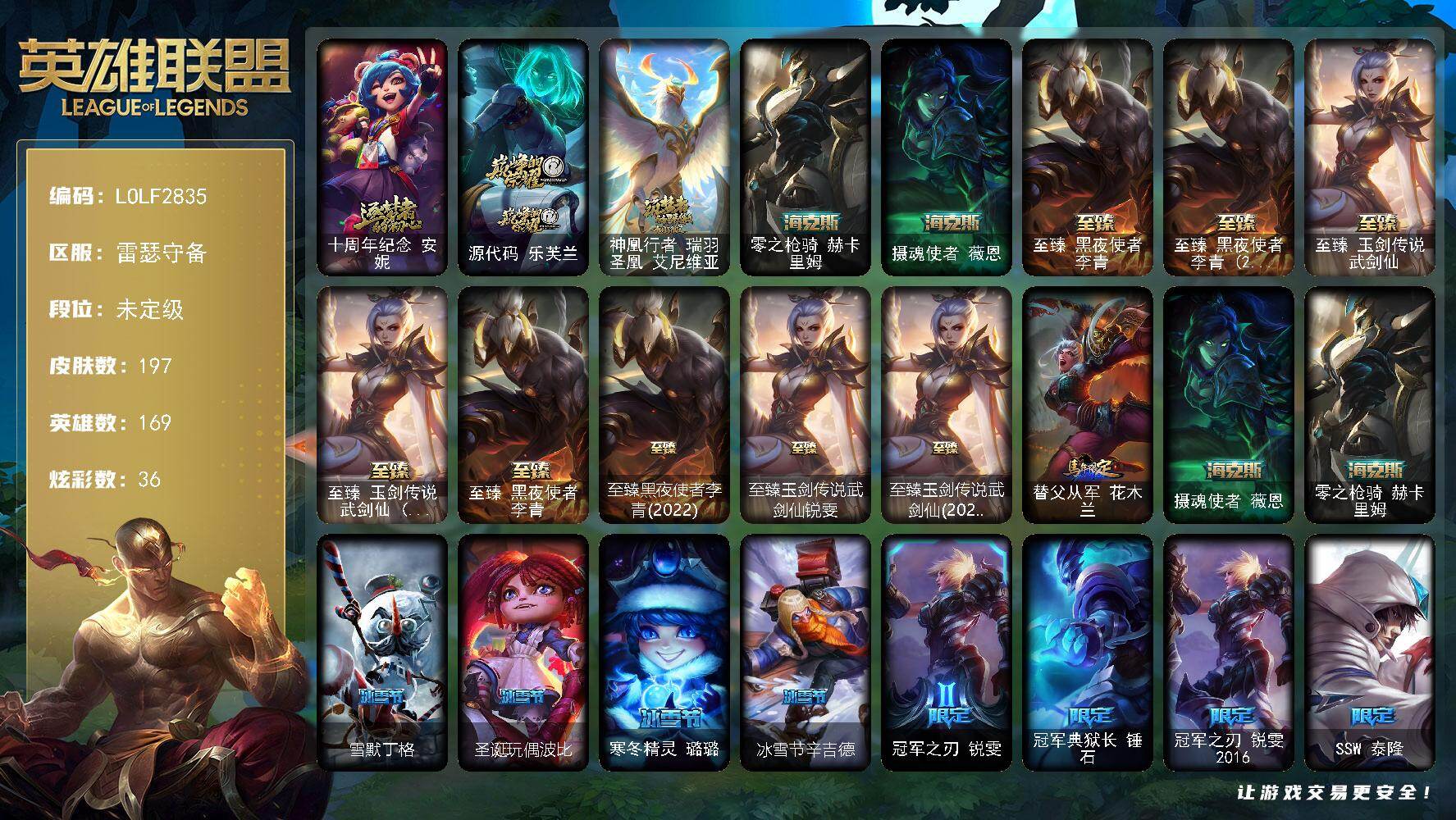 169英雄/197皮肤/9神话/23限定/5臻彩/36炫彩/18