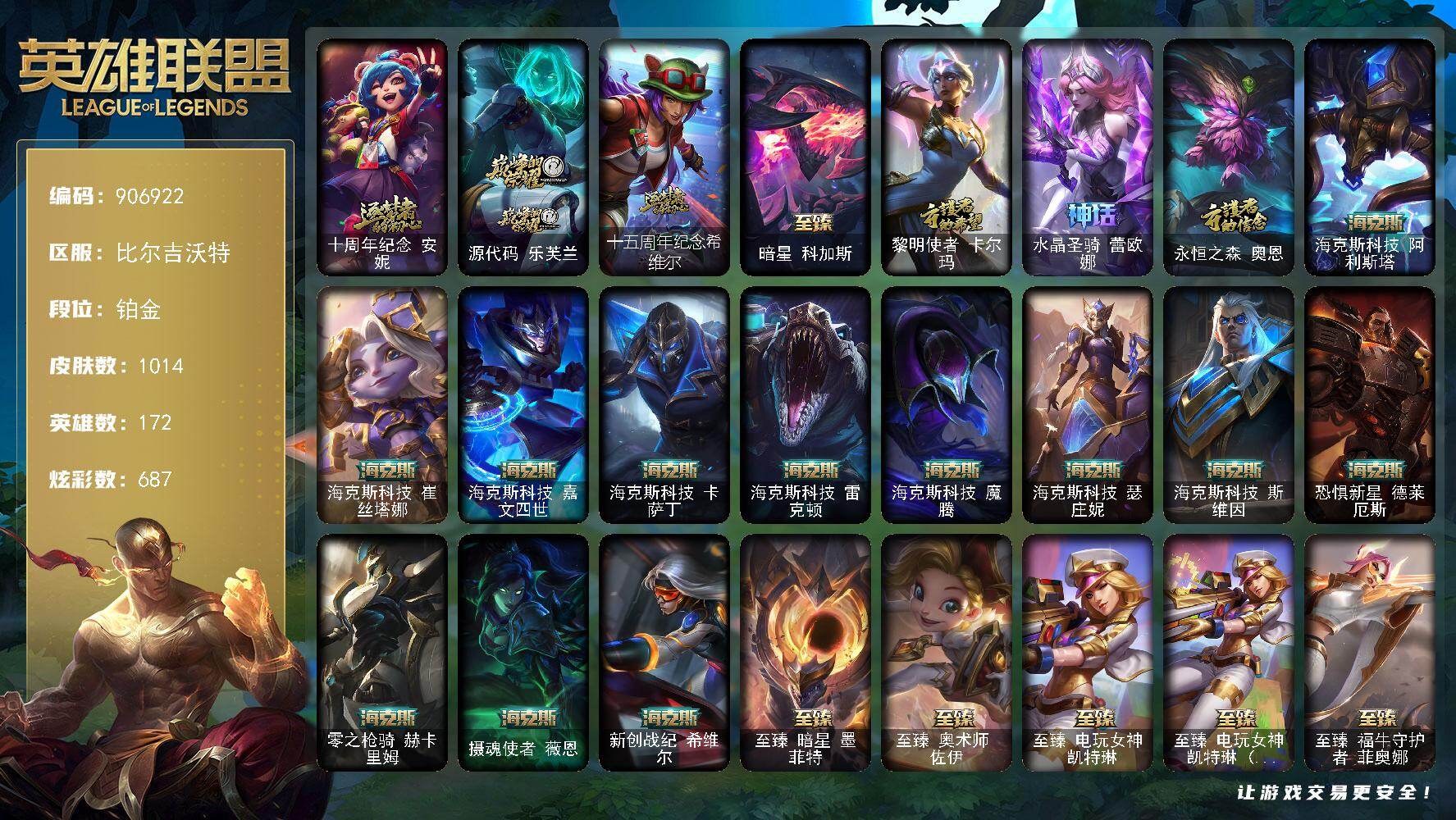 铂金段位-172英雄-572皮肤-359炫彩-2终极-26神话-98限定-