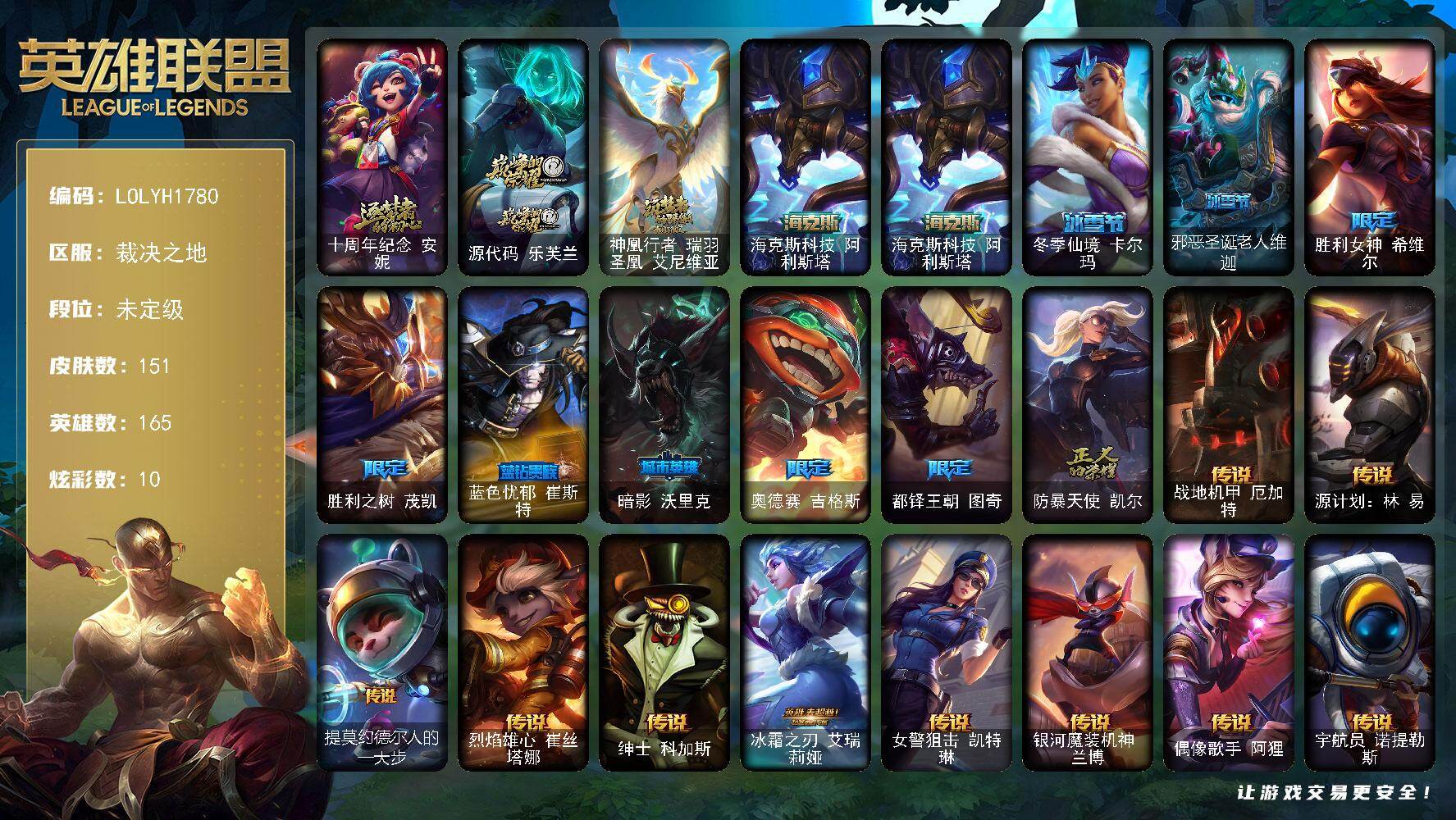 165英雄/151皮肤/4神话/9限定/1臻彩/10炫彩/12