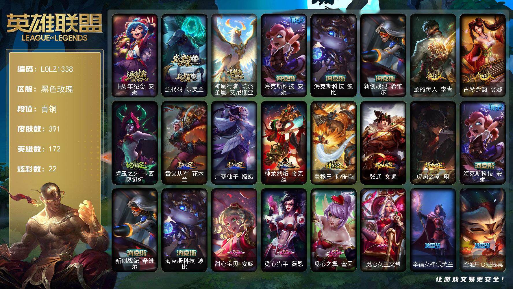 172英雄/391皮肤/4终极/6神话/96限定/1臻彩/22炫
