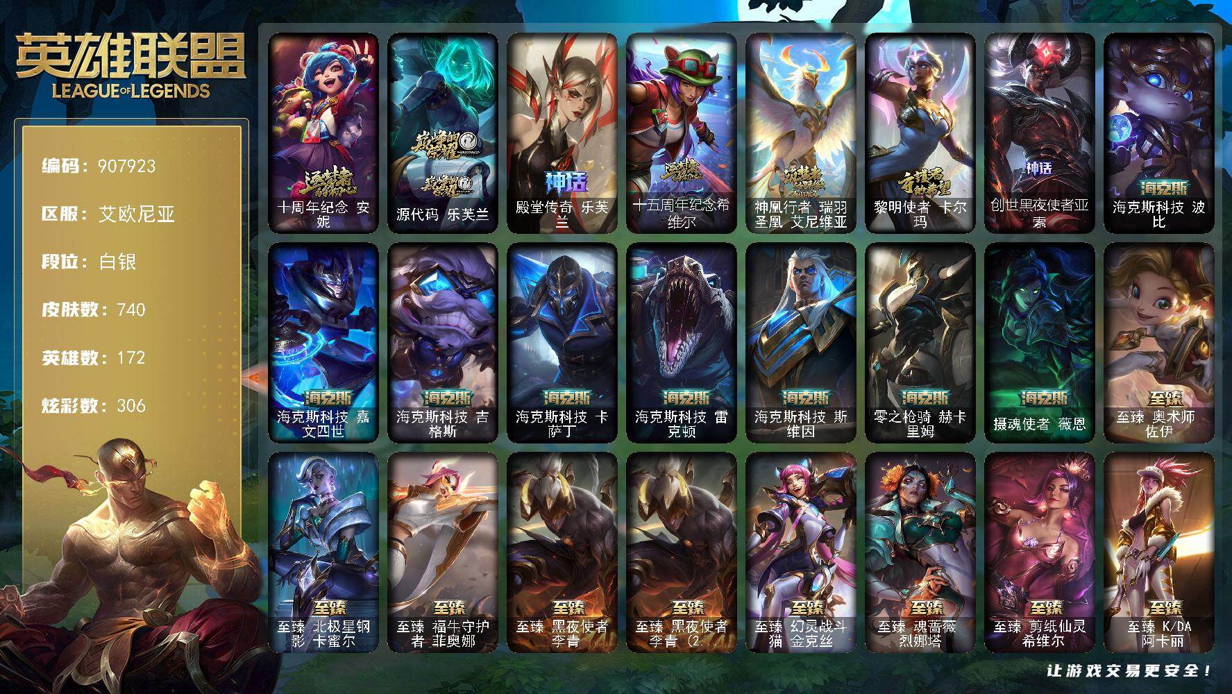 创世黑夜使者亚索 单双白银段位-172英雄-740皮肤-306炫彩-2终极-60神话