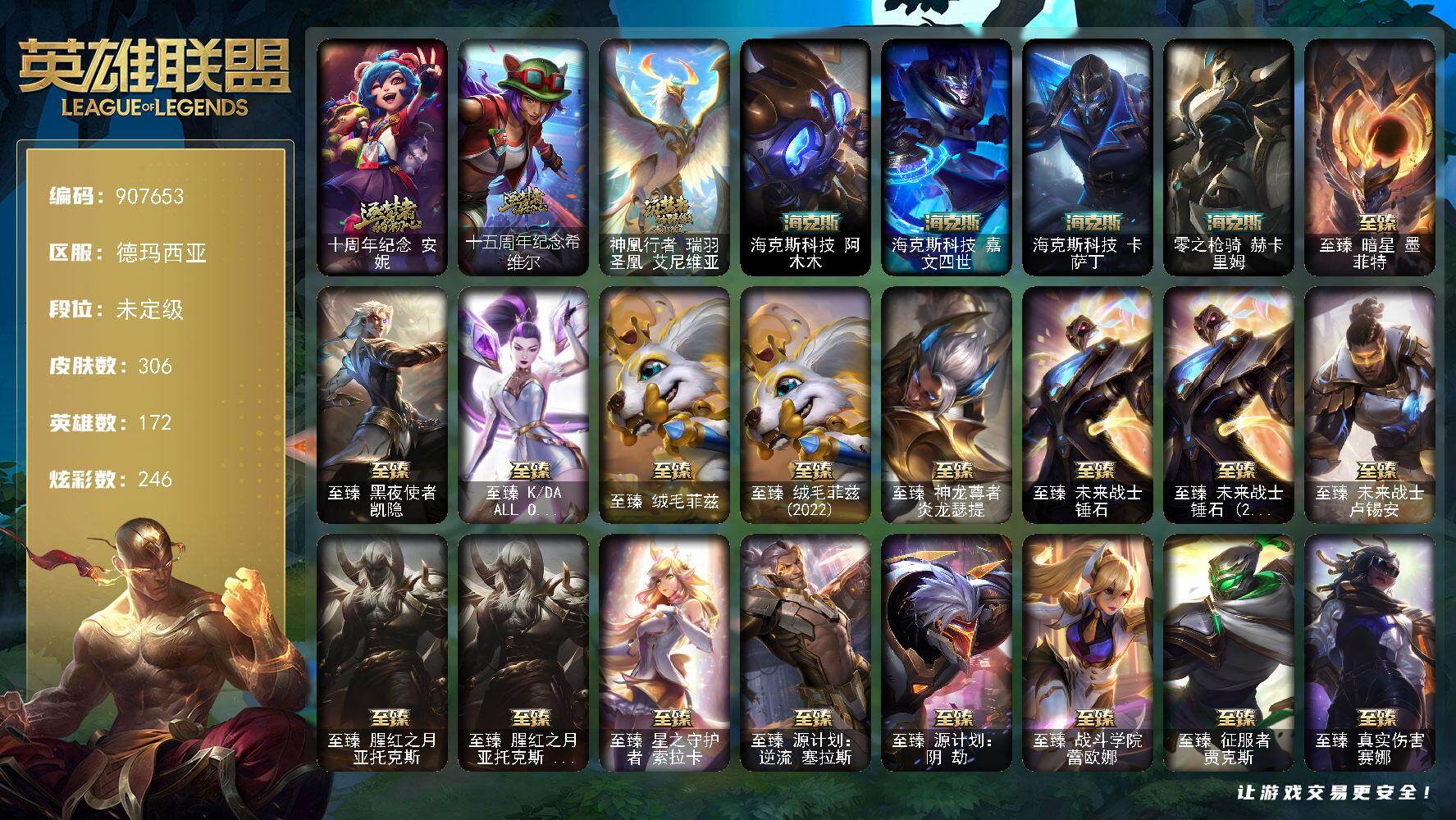 未定级段位-172英雄-306皮肤-246炫彩-2终极-27神话-42限定-30传说