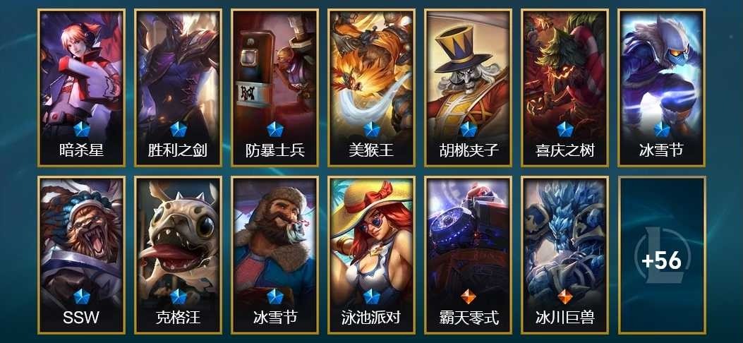 172英雄/409皮肤/3终极/15神话/67限定/7臻彩/241炫彩/41传说/97史诗/铂金/