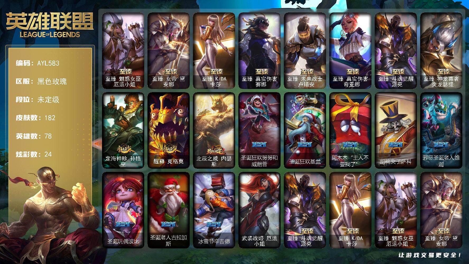 【店主推荐捡漏号】未定级段位-78英雄-182皮肤-24炫彩-1终极-8神话-