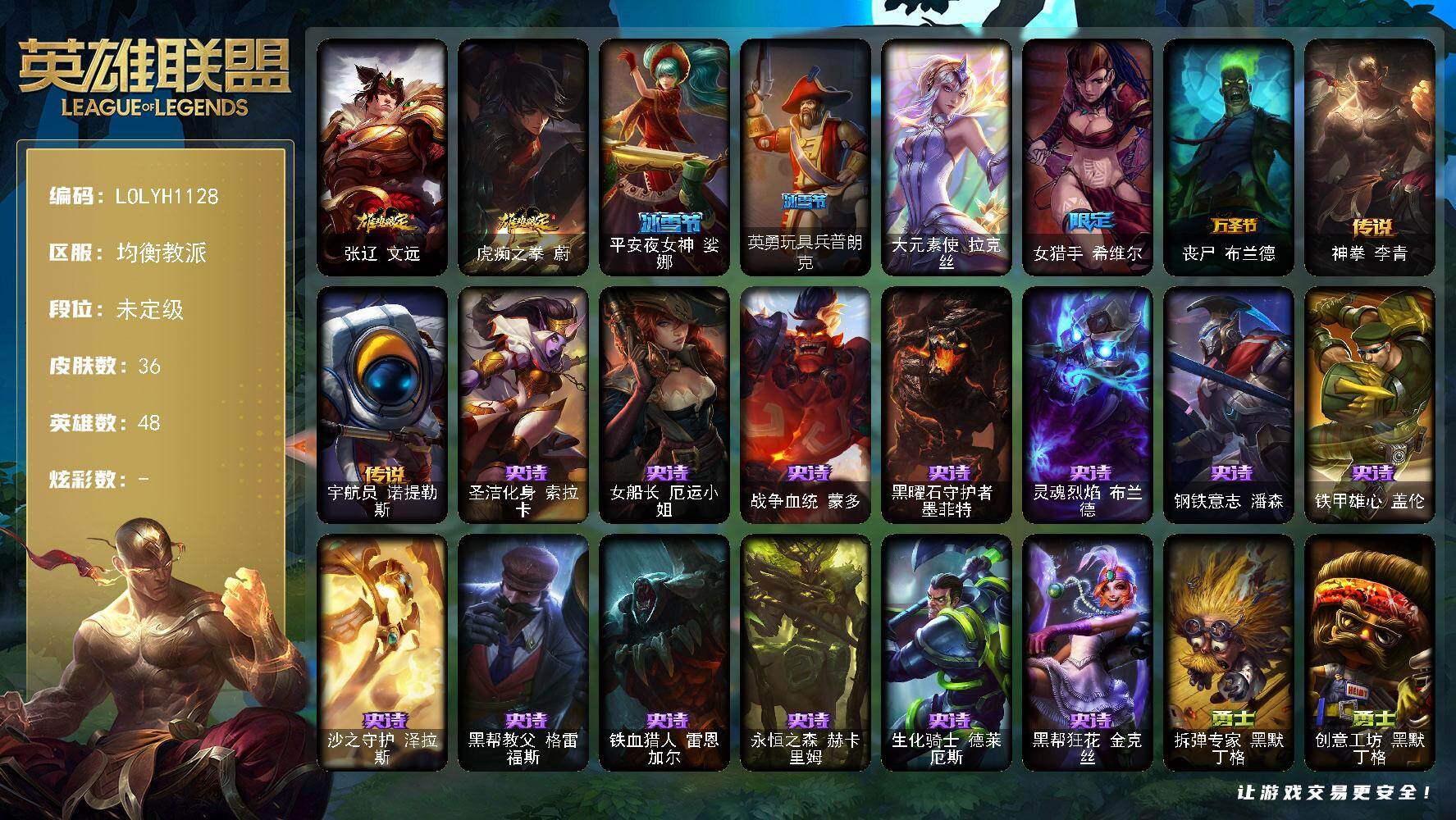 48英雄/36皮肤/1终极/5限定/3传说/13史诗/未定级