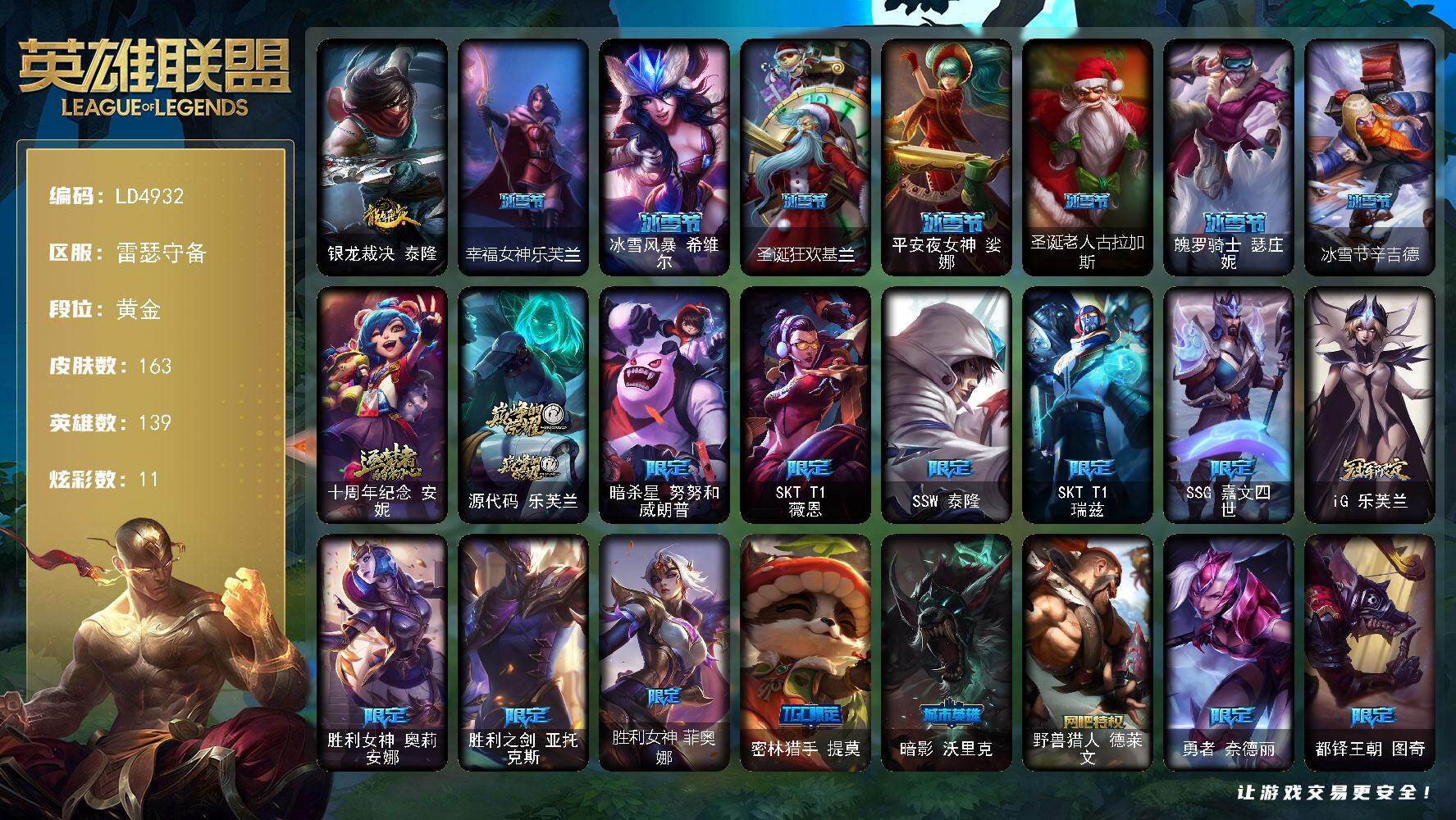 139英雄/163皮肤/2神话/23限定/2臻彩/11炫彩/14传说/32史诗/
