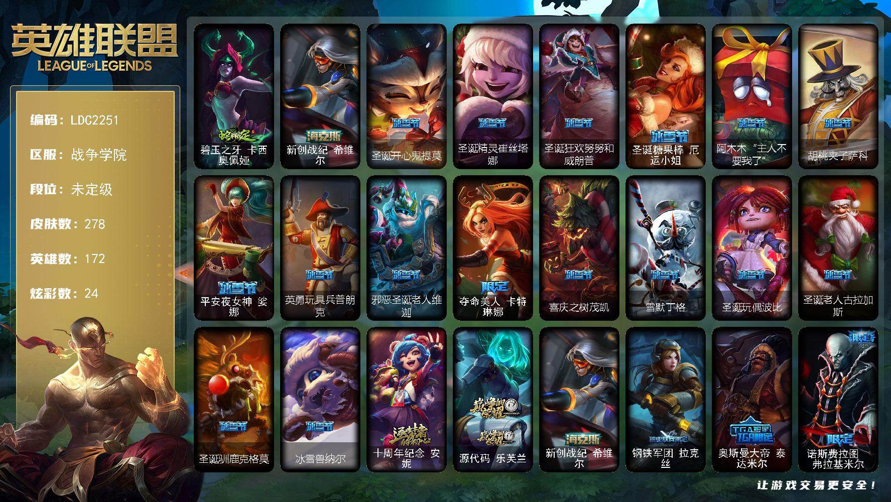 172英雄/278皮肤/3神话/52限定/1臻彩/24炫彩/13传说/68史诗/未定级