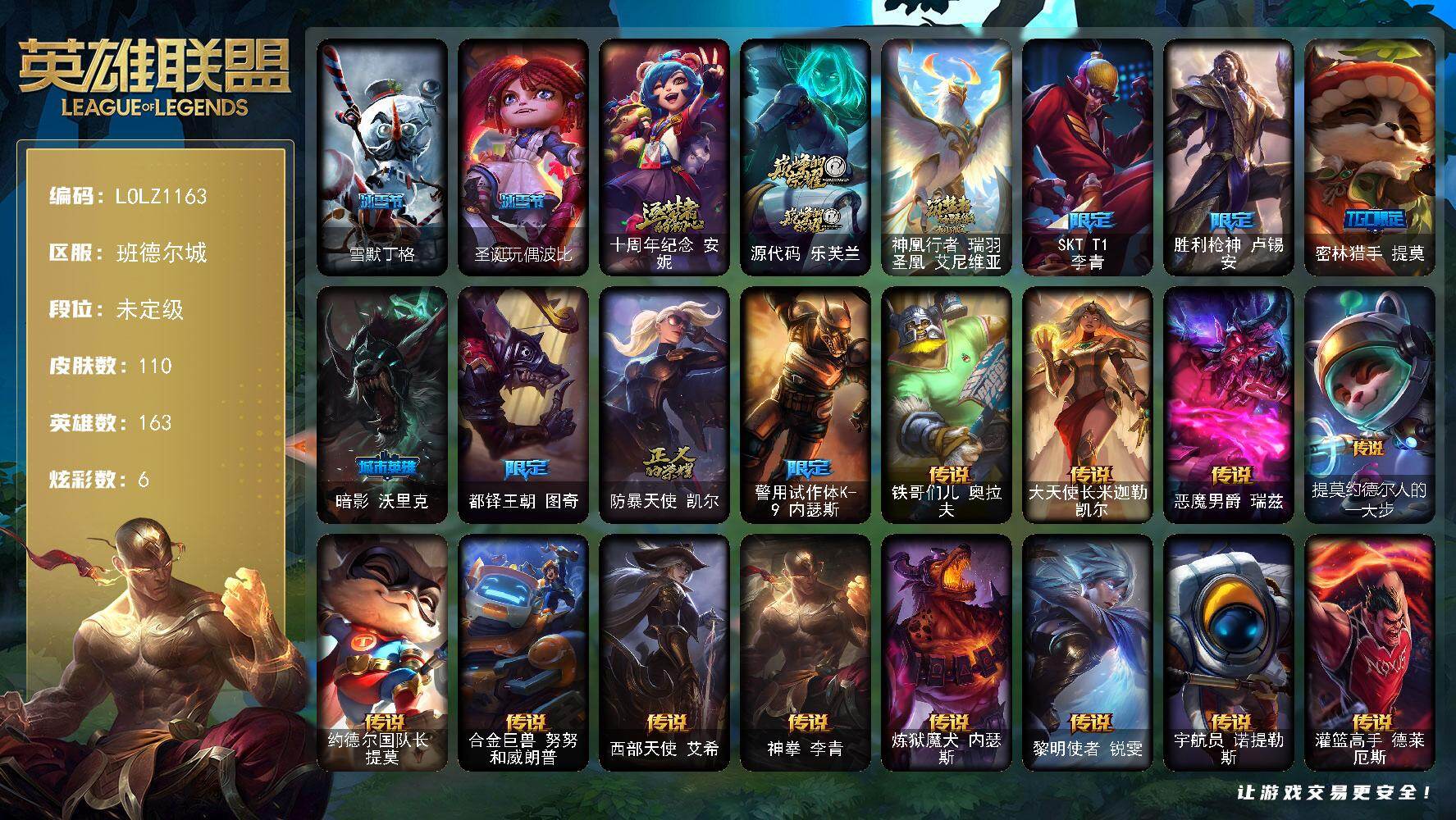 163英雄/110皮肤/3神话/9限定/6炫彩/14传说/33史诗/未定级