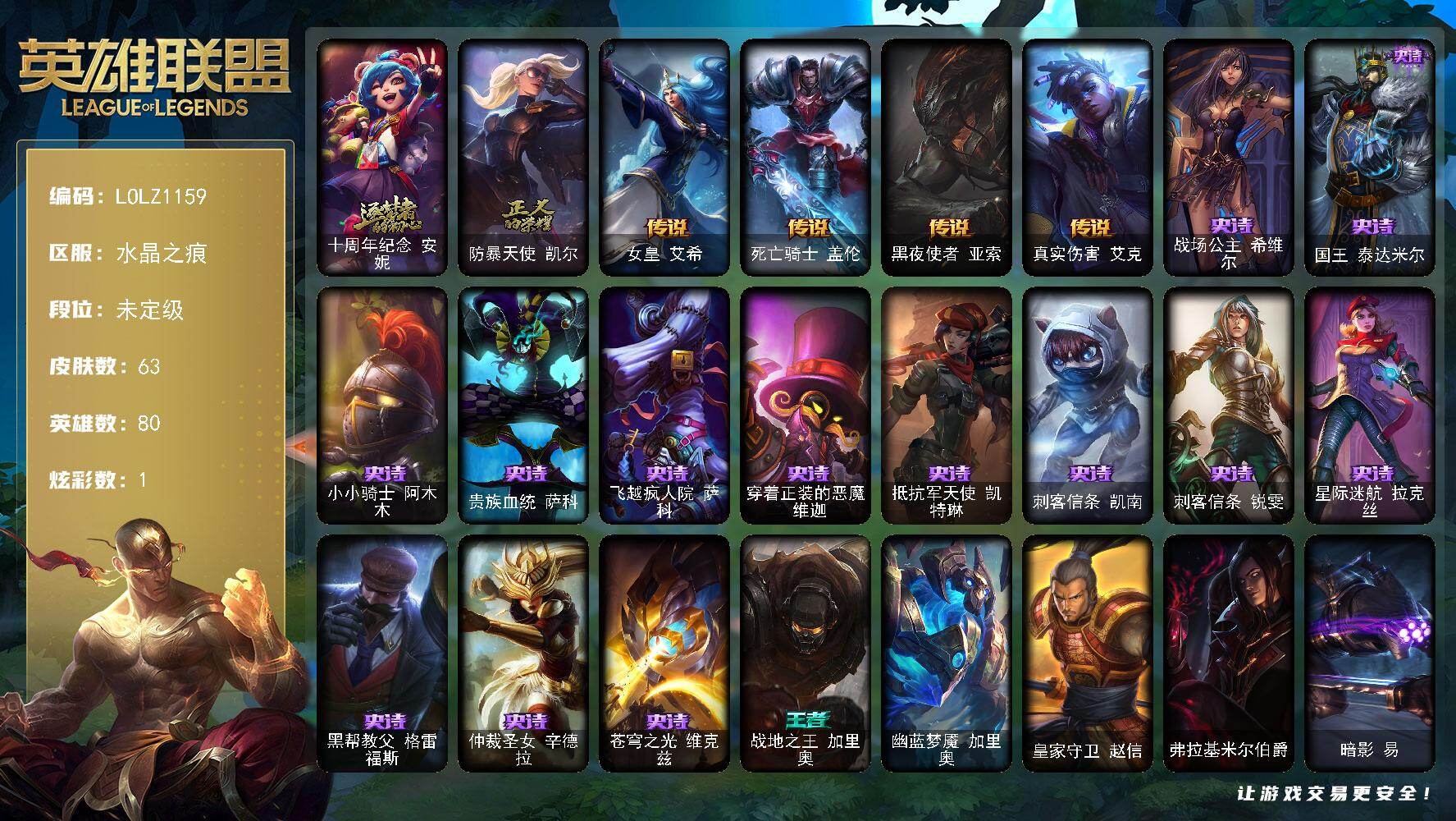 80英雄/63皮肤/1神话/1限定/1炫彩/4传说/13史诗/未定级