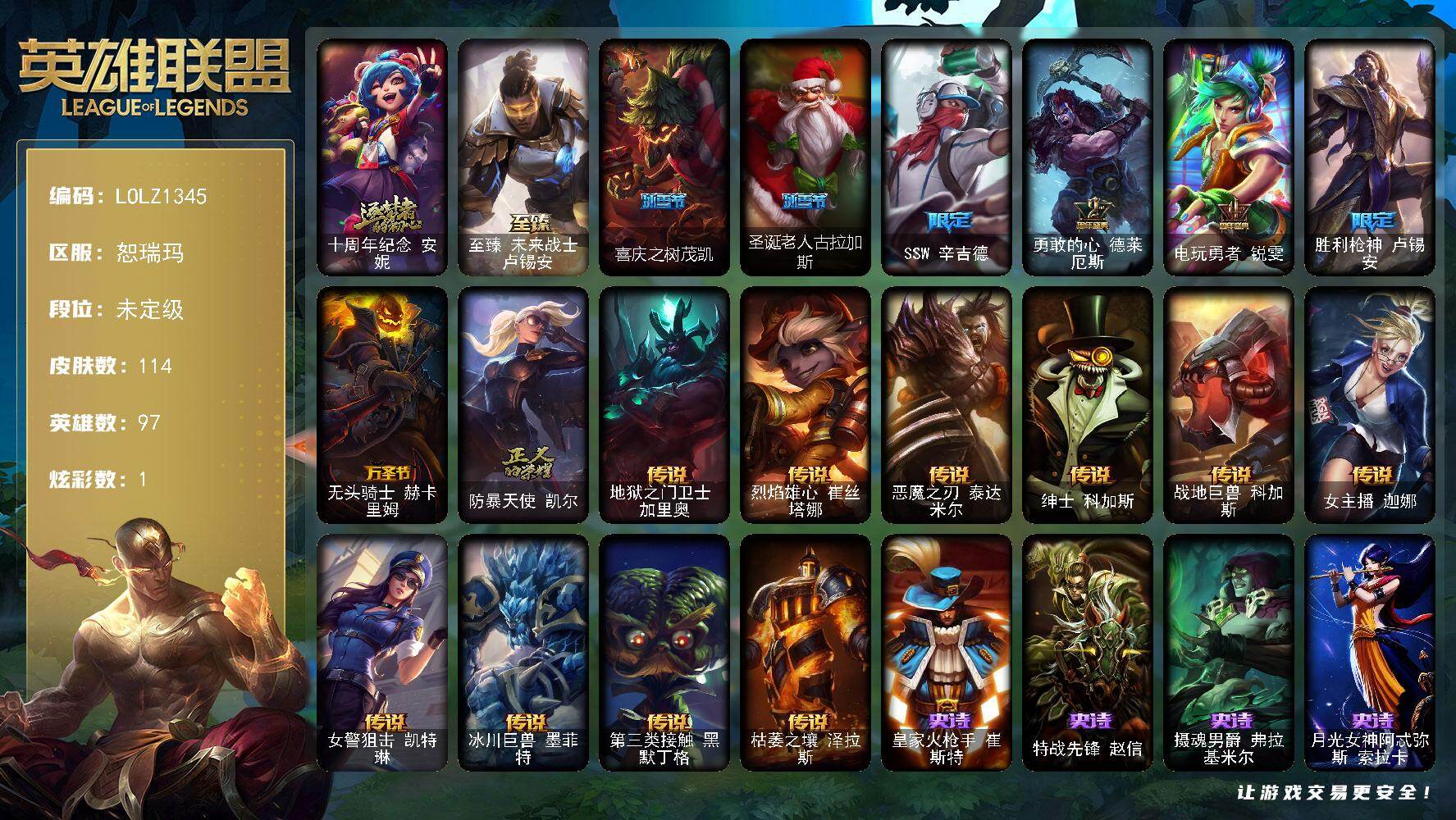 97英雄/114皮肤/2神话/8限定/1炫彩/10传说/28史诗