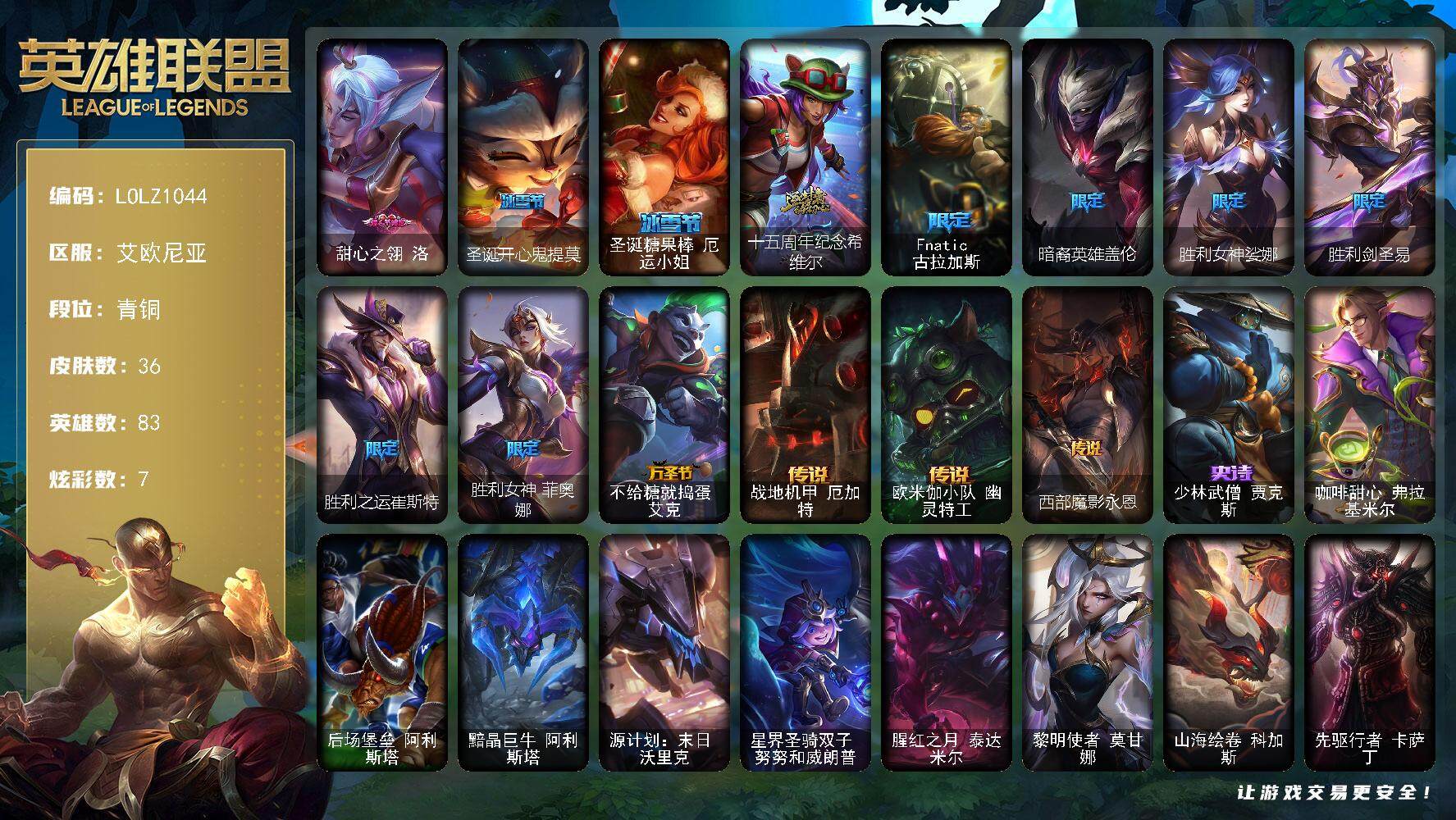 83英雄/36皮肤/1神话/10限定/3臻彩/7炫彩/3传说/1史诗/青铜/
