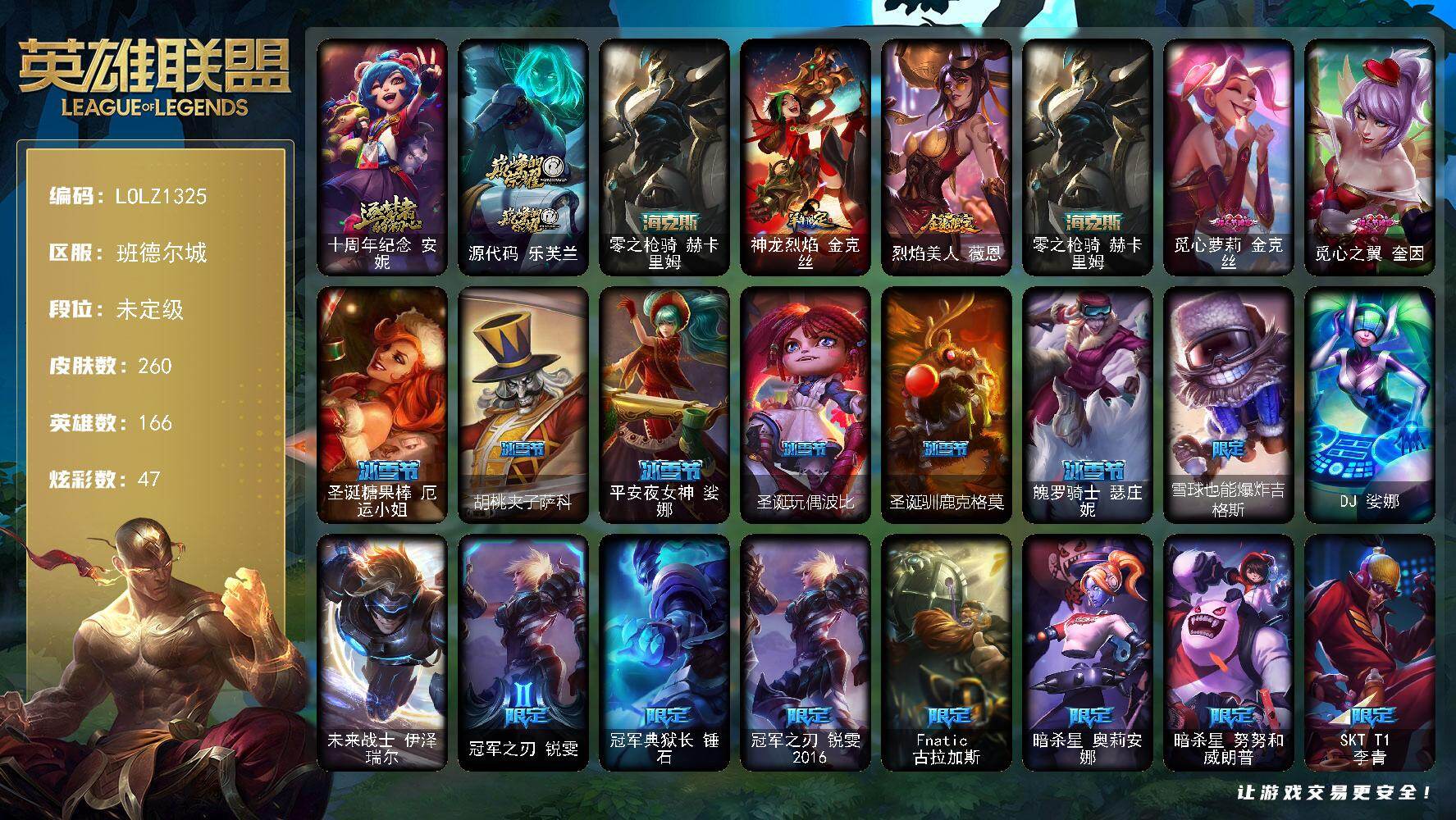 未定级段位-166英雄-260皮肤-47炫彩-2终极-3神话-33限定-23传说-7